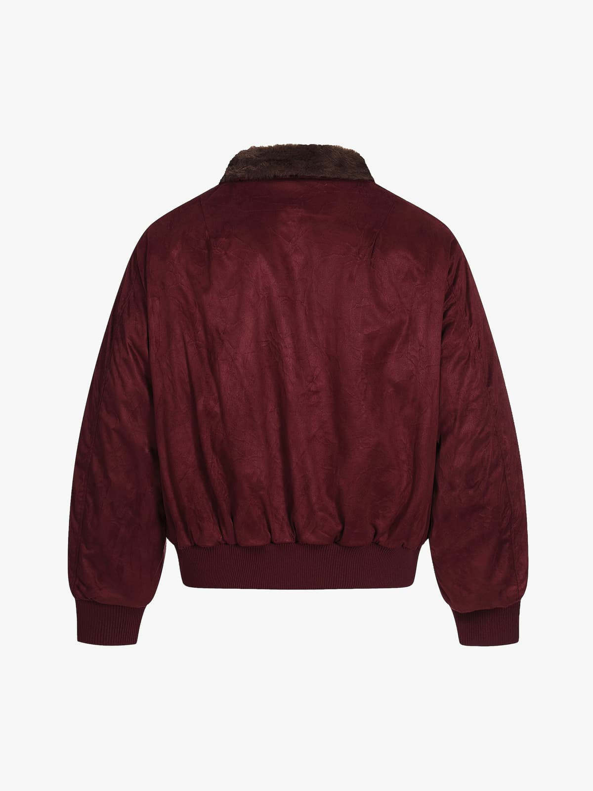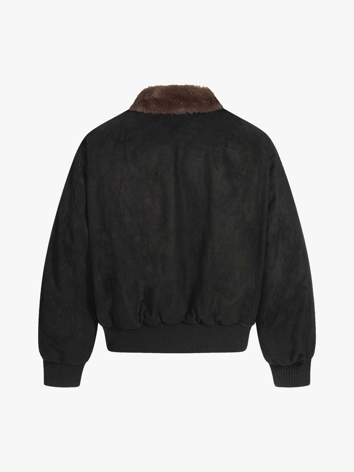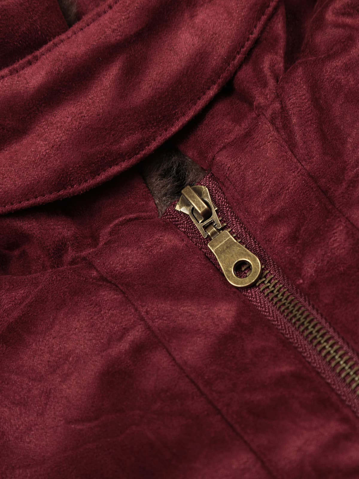 Retro Suede Faux Fur Collar Fleece Lined Bomber Jacket