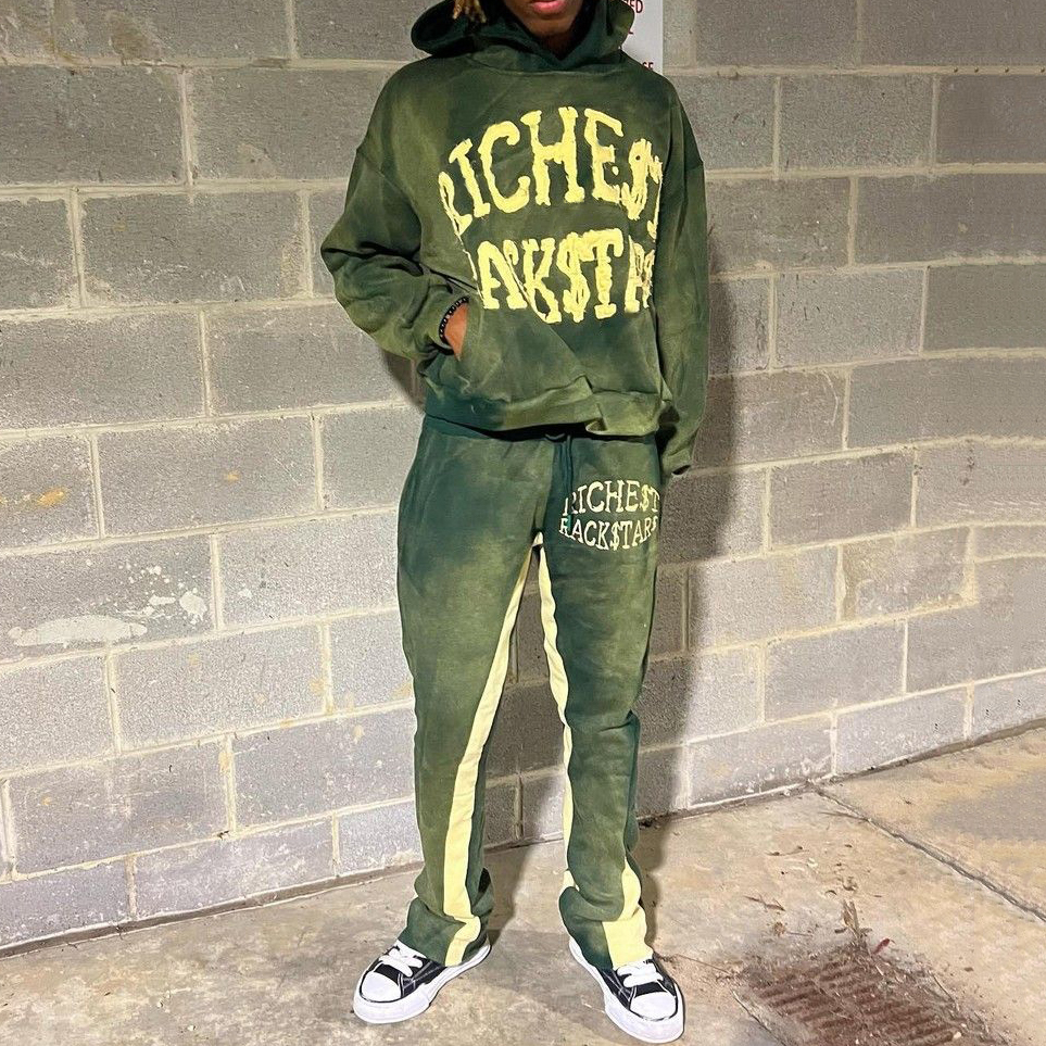 Richest Rock Print Hoodie Sweatpants Two Piece Set