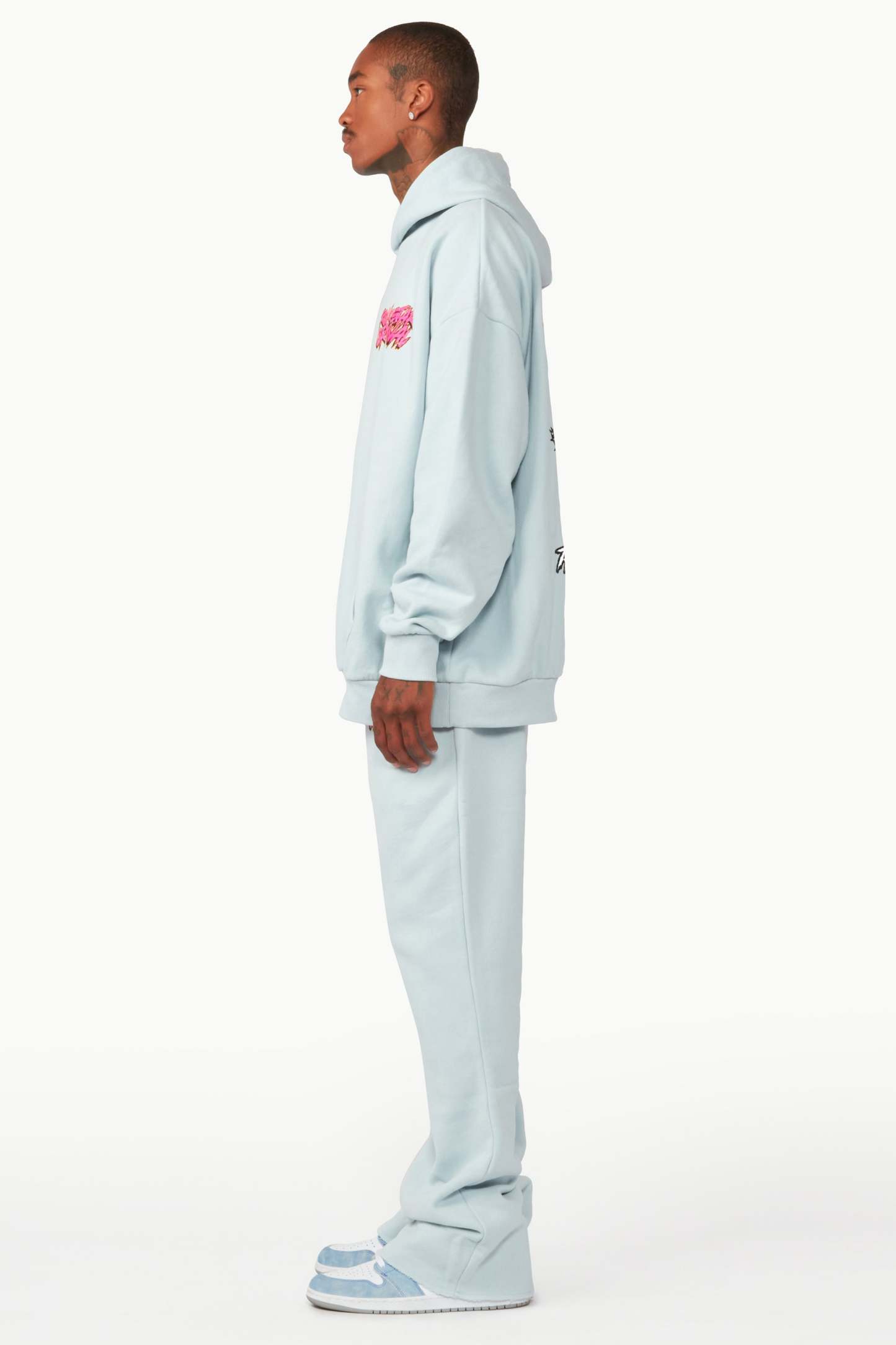 Clava Sky Blue Oversized Hoodie/Flare Trackset