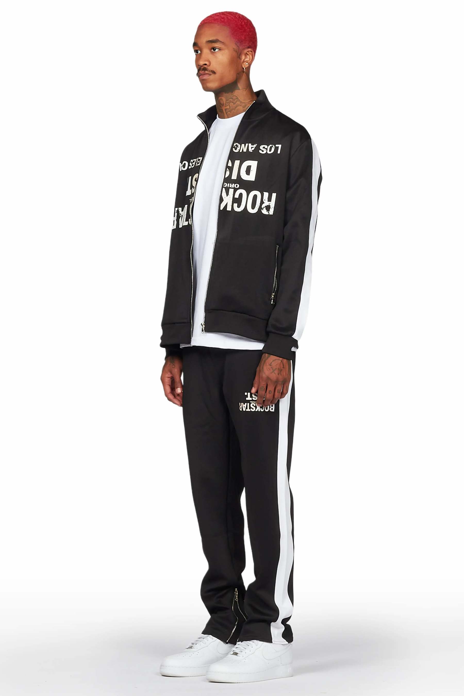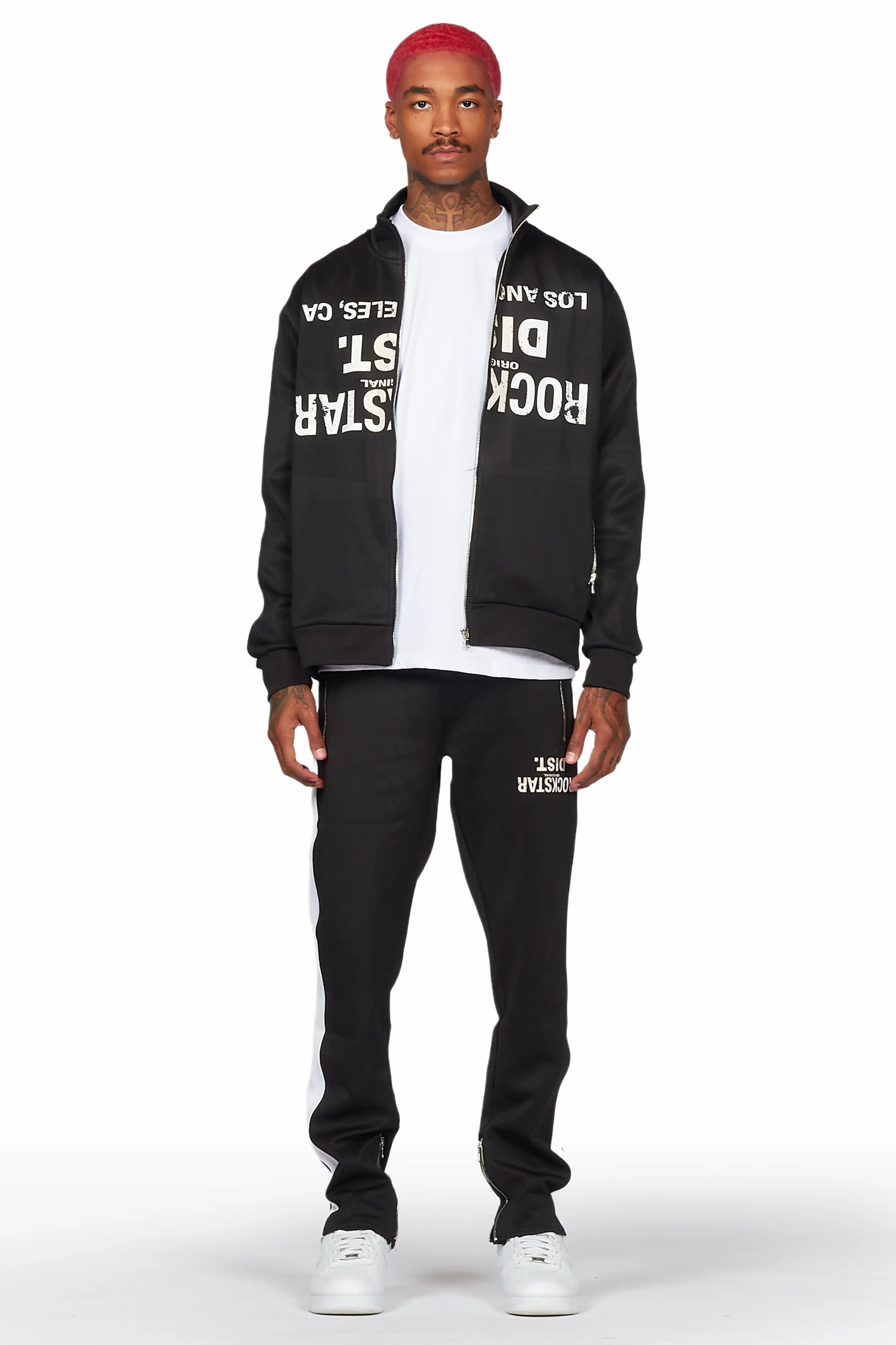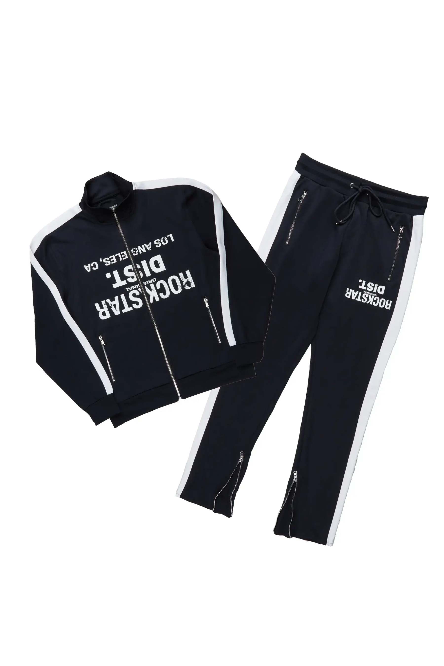 Dist. Town Black Slim Fit Tricot Track Set