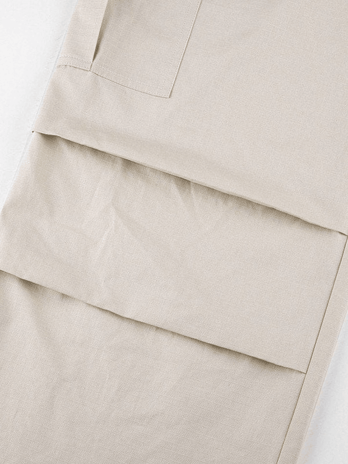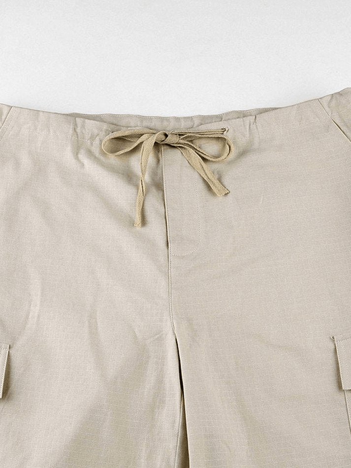 Design: Sits to a flattering drawstring tie waist detail, features a relax silhouette and cargo pockets patched design, ended with a zip button fasten to the front.