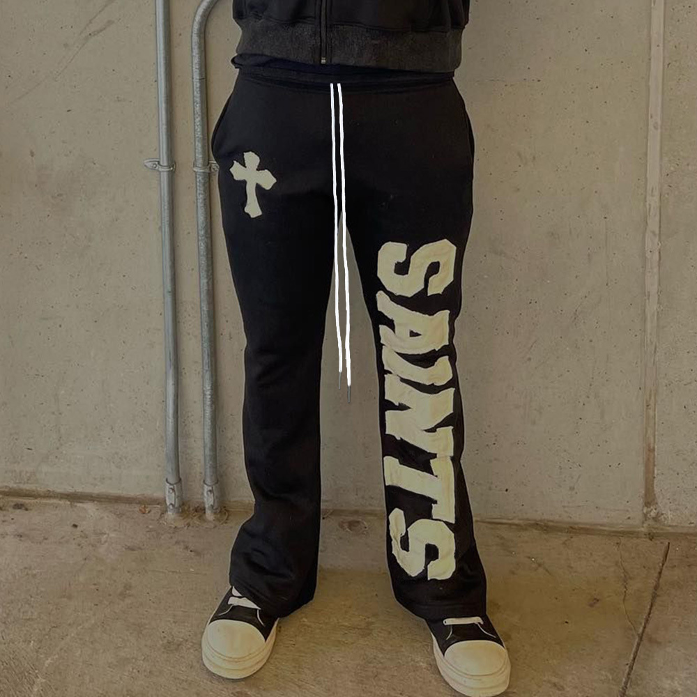 Saints Cross Print Pocket Flared Trousers