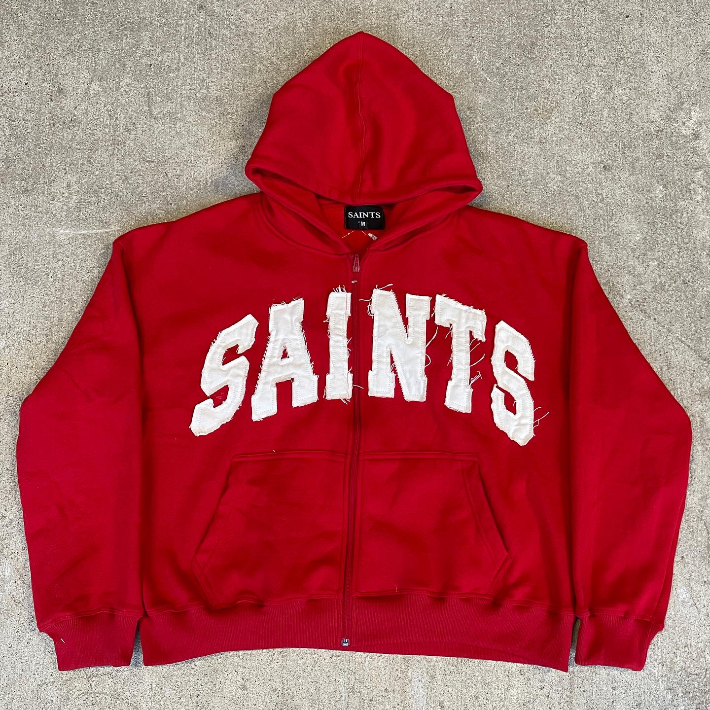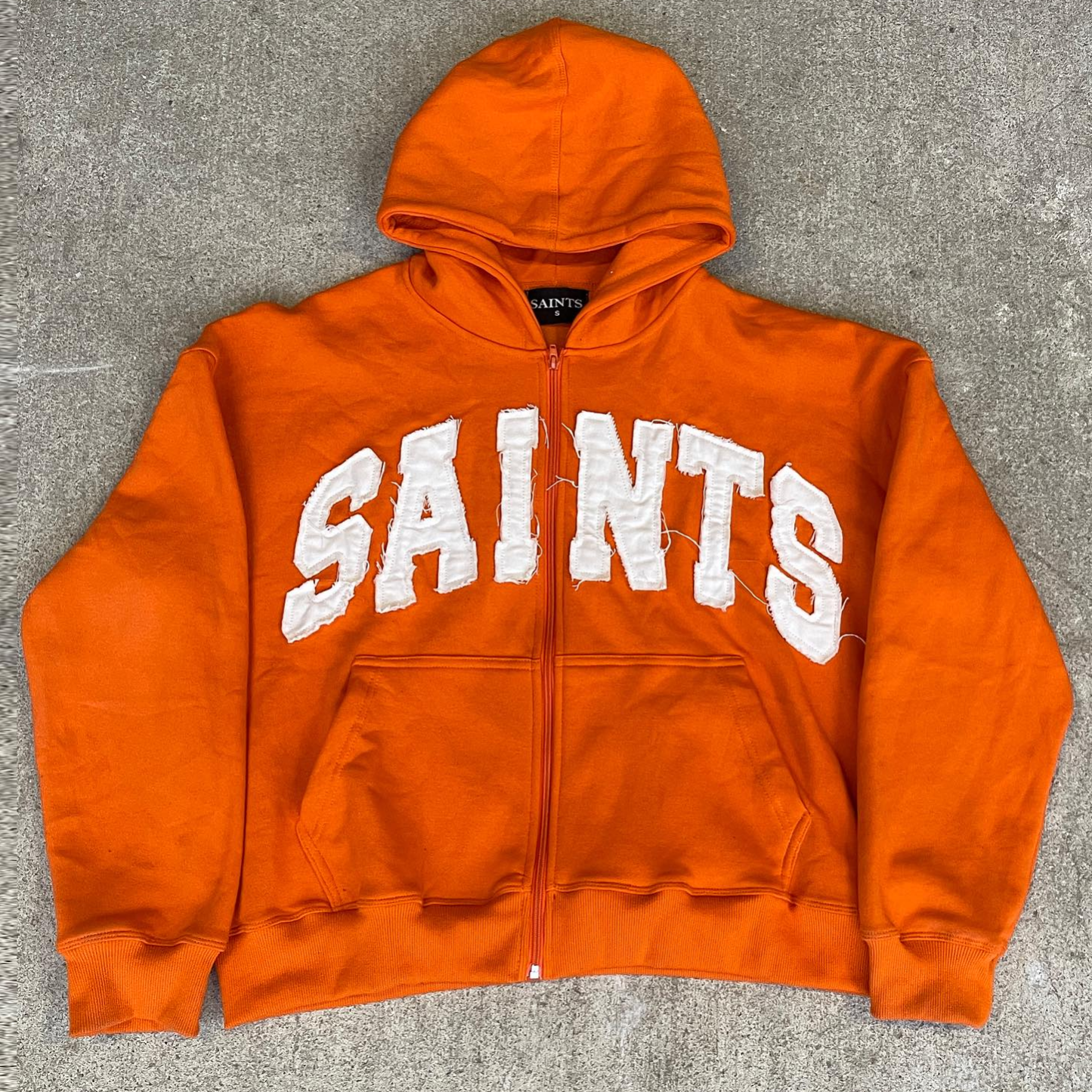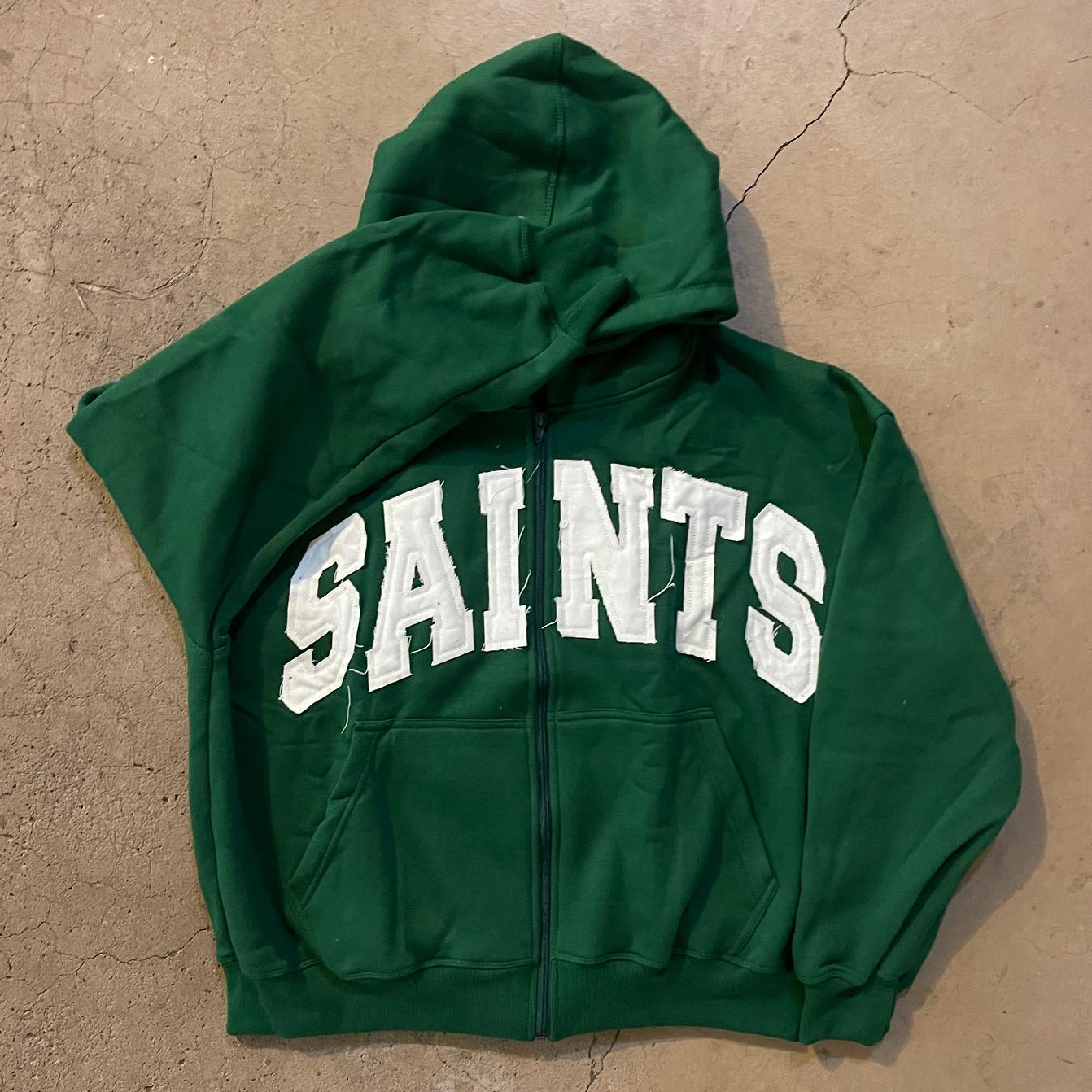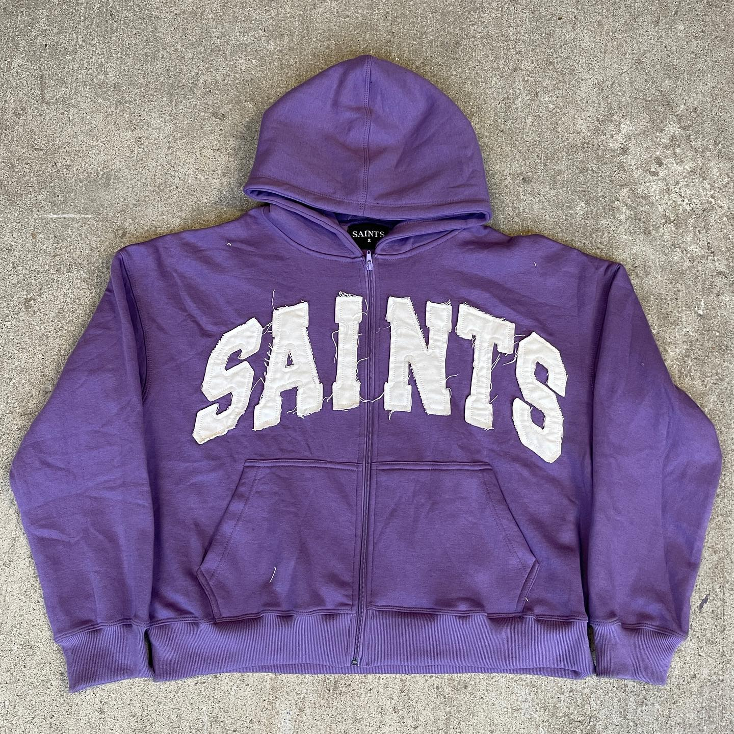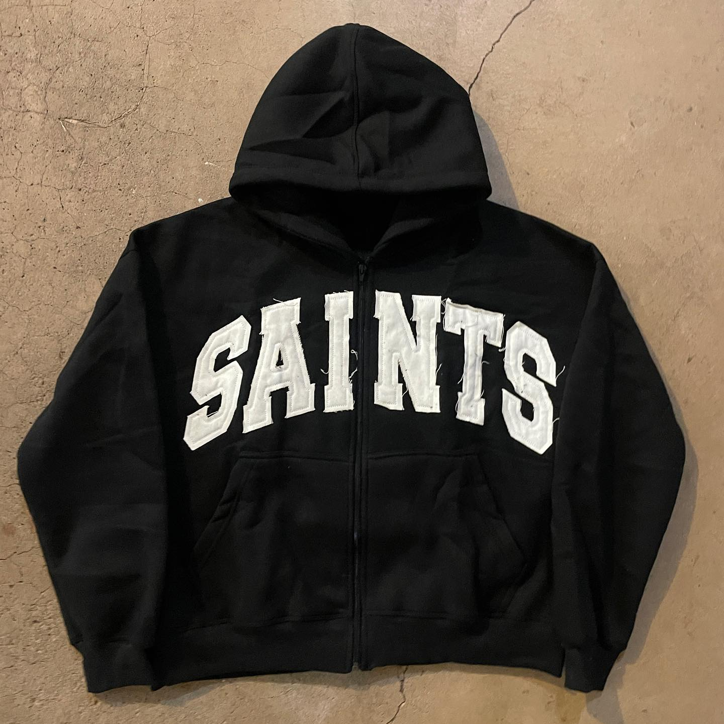 saints patch zip-up hoodie