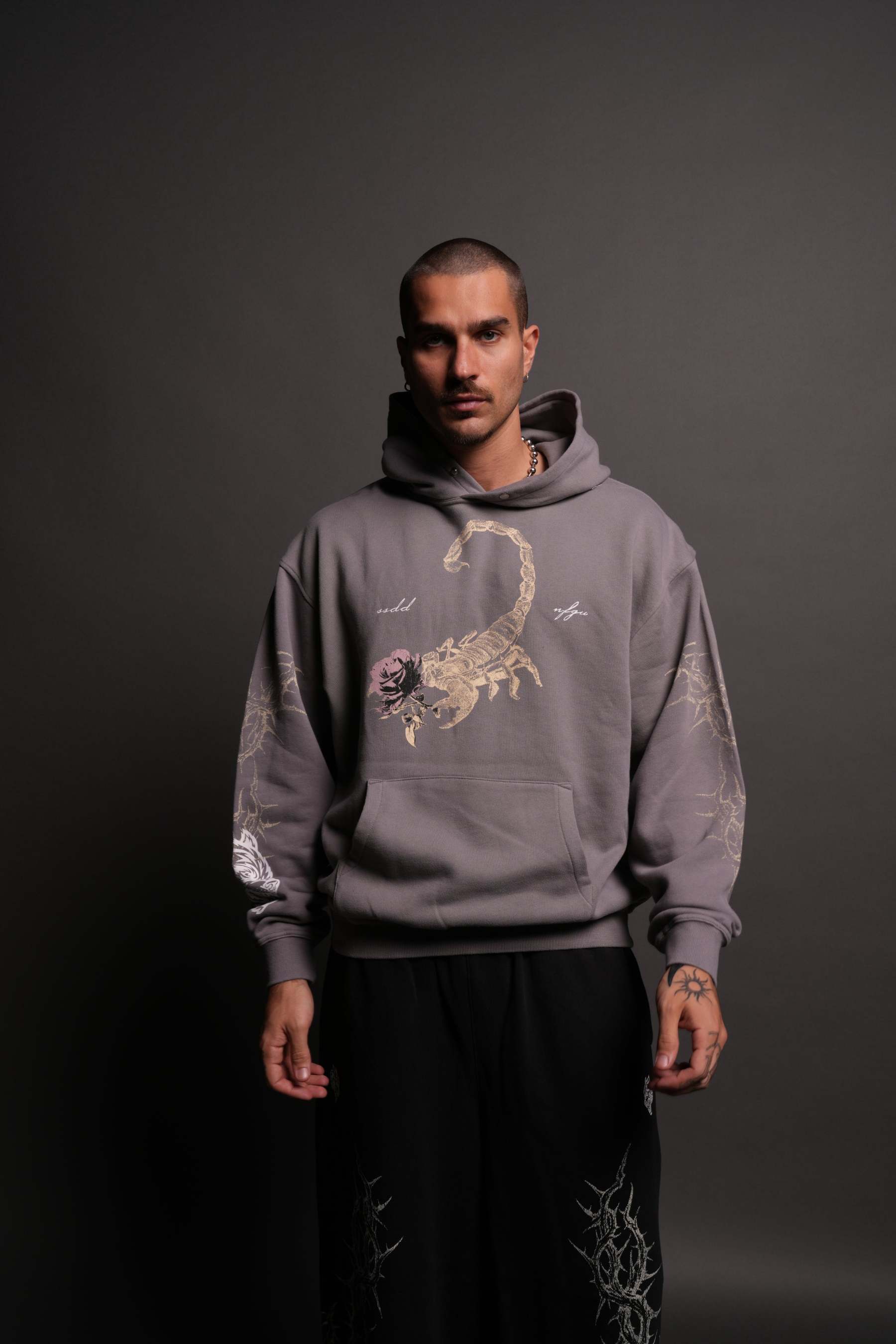 Scorpion Rose "Pierce" Hoodie in Dove Gray
