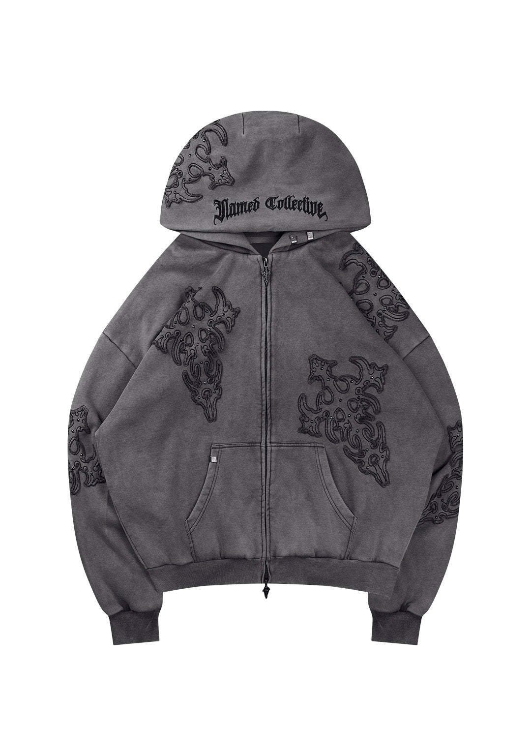 SINNER STUDDED ZIP HOODIE GREY VINTAGE WASH