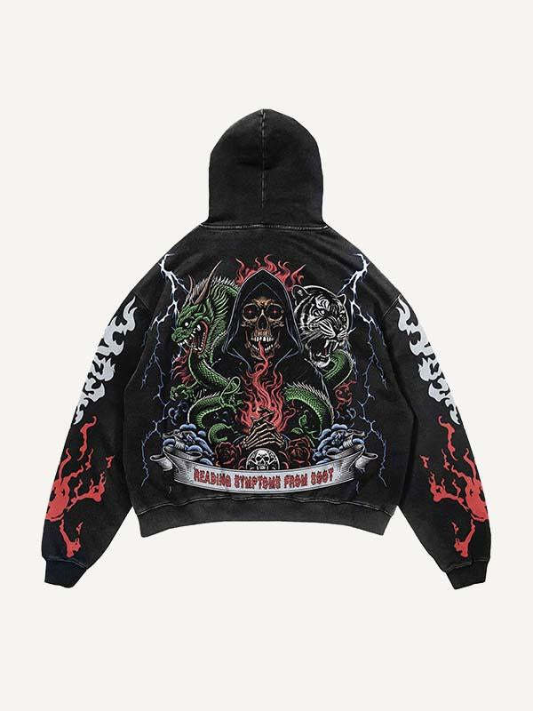 Skeleton&Dragon&Tiger&Letter&Graphic Print Slant Pockets Hoodie