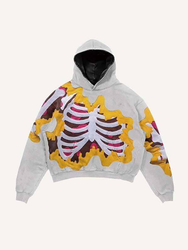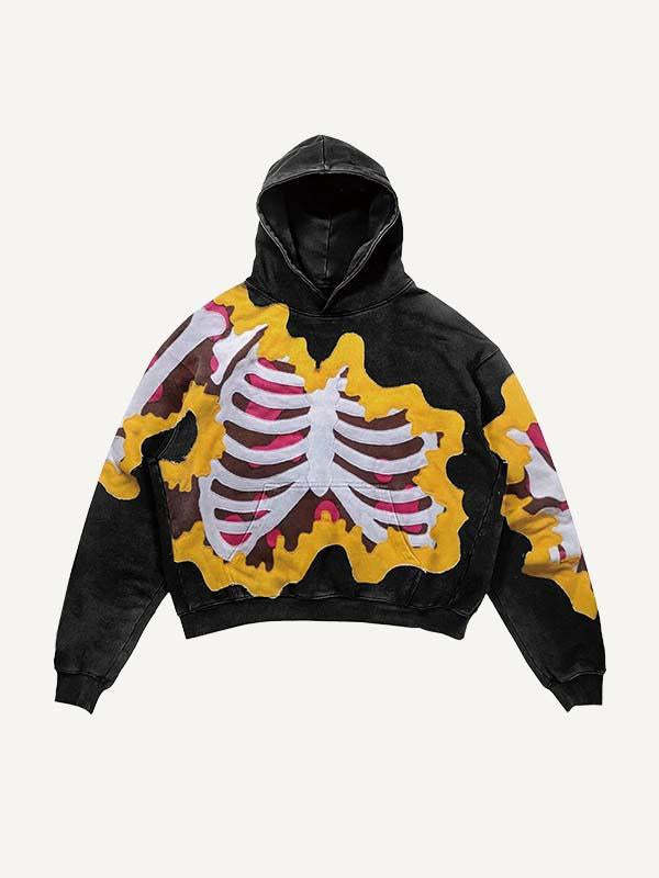 Skeleton Faux Decal Print Slant Pockets Hoodie
