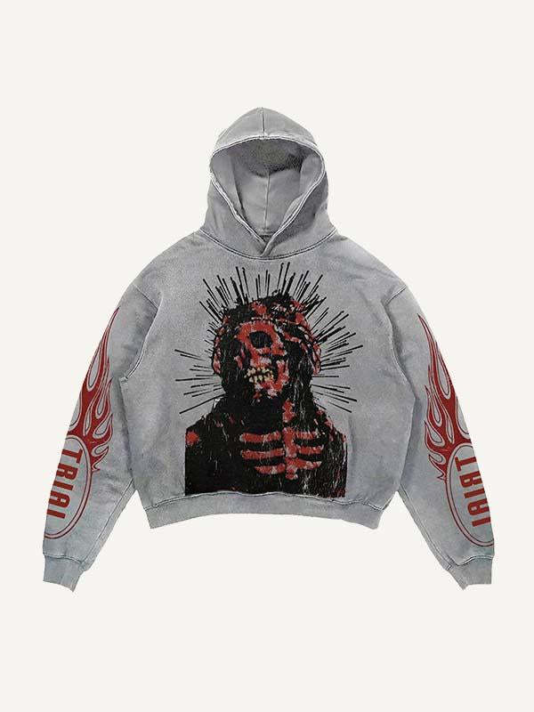 Skeleton Print Slant Pockets Hoodie