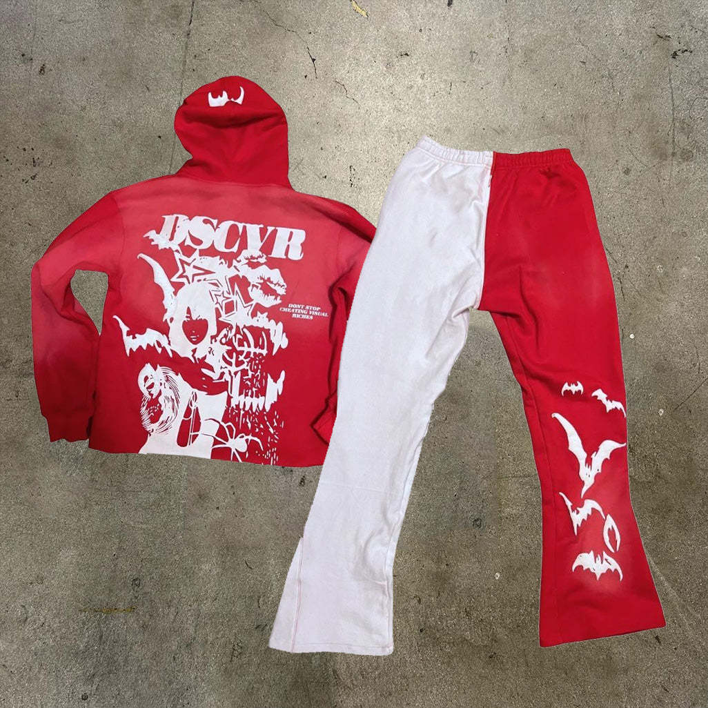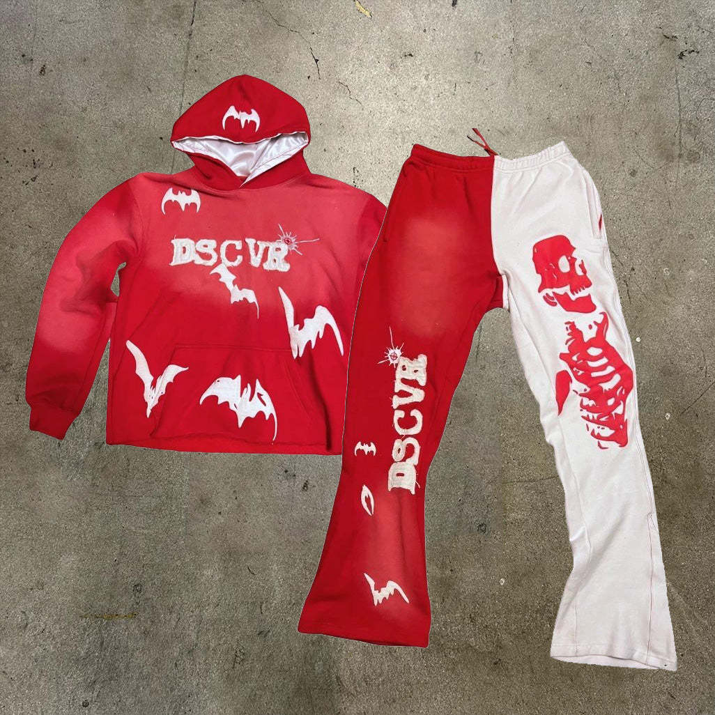 Skull Bat Printed Hoodie Sweatpants Two Piece Set