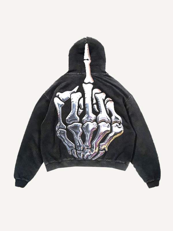 Skull Palm Slant Pockets Hoodie