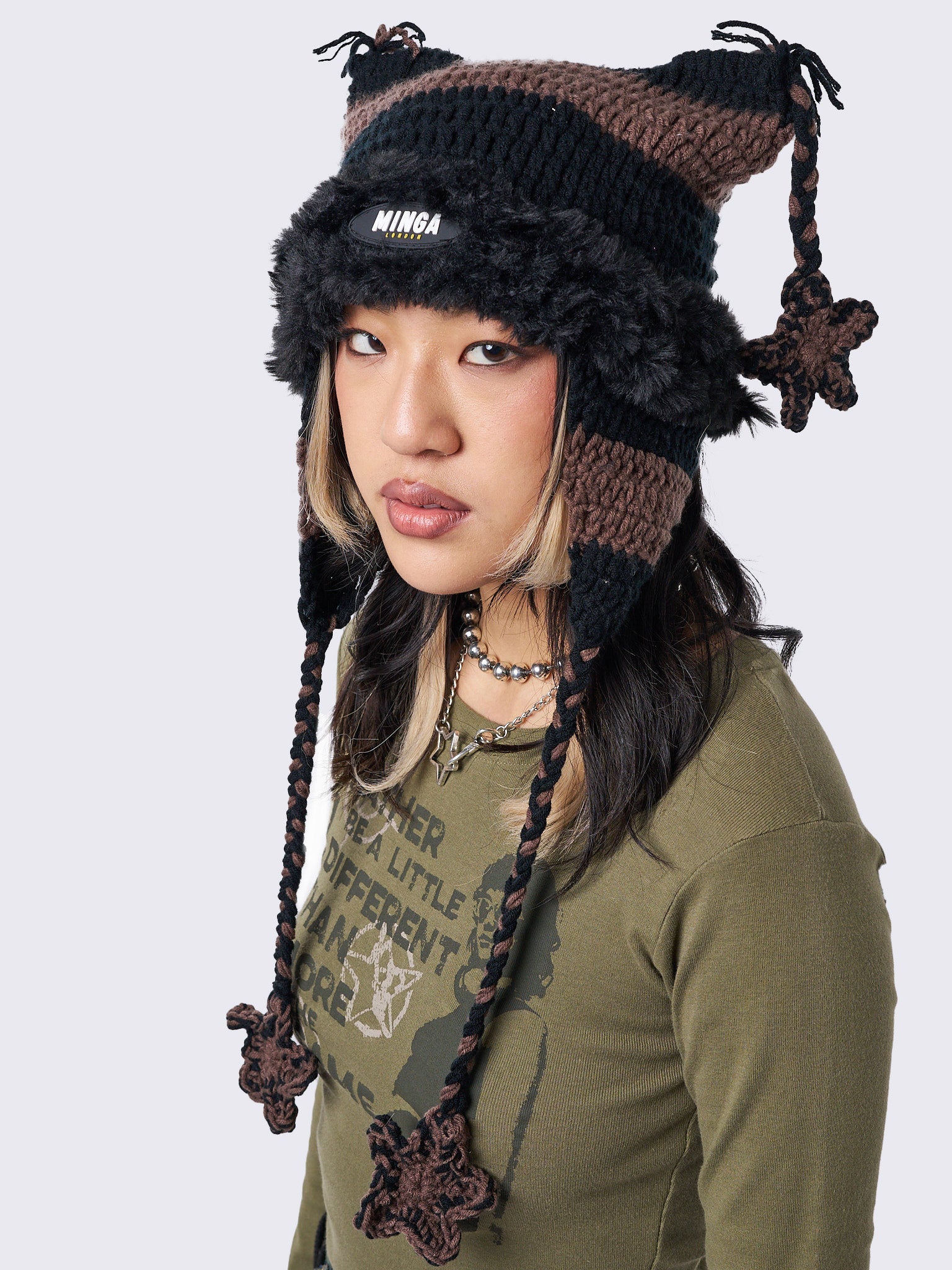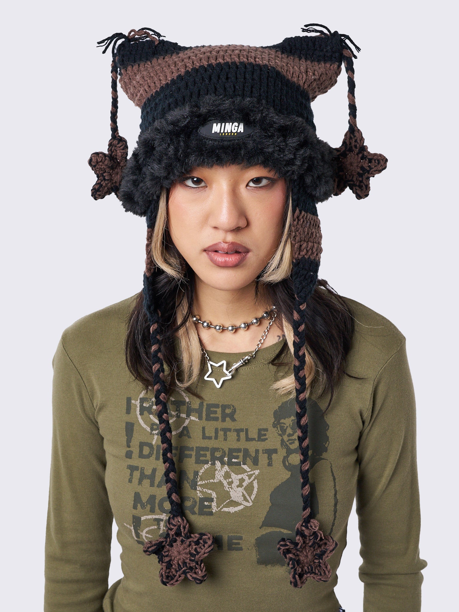 Skylar Star Brown Tie Knit Hat
