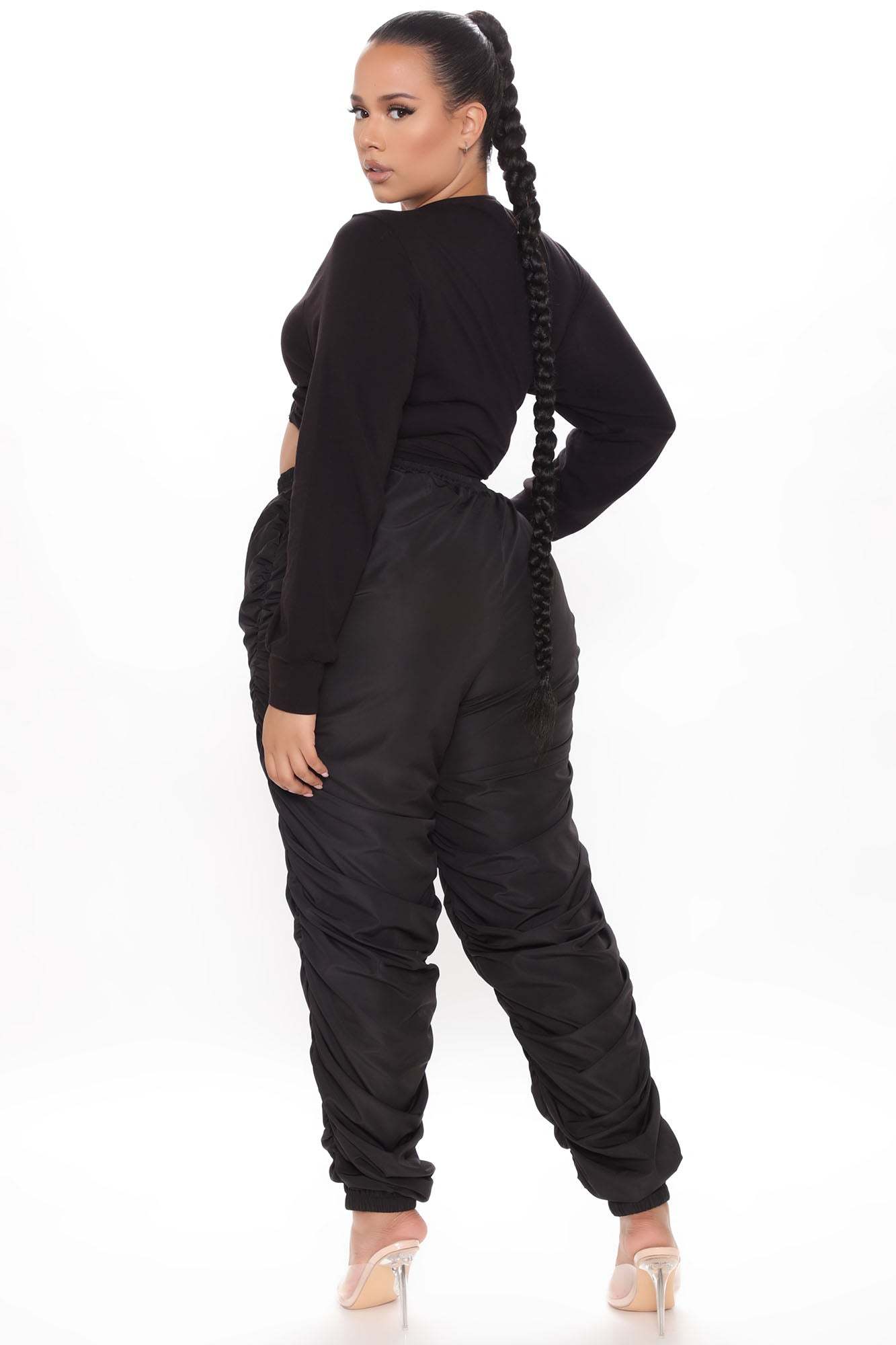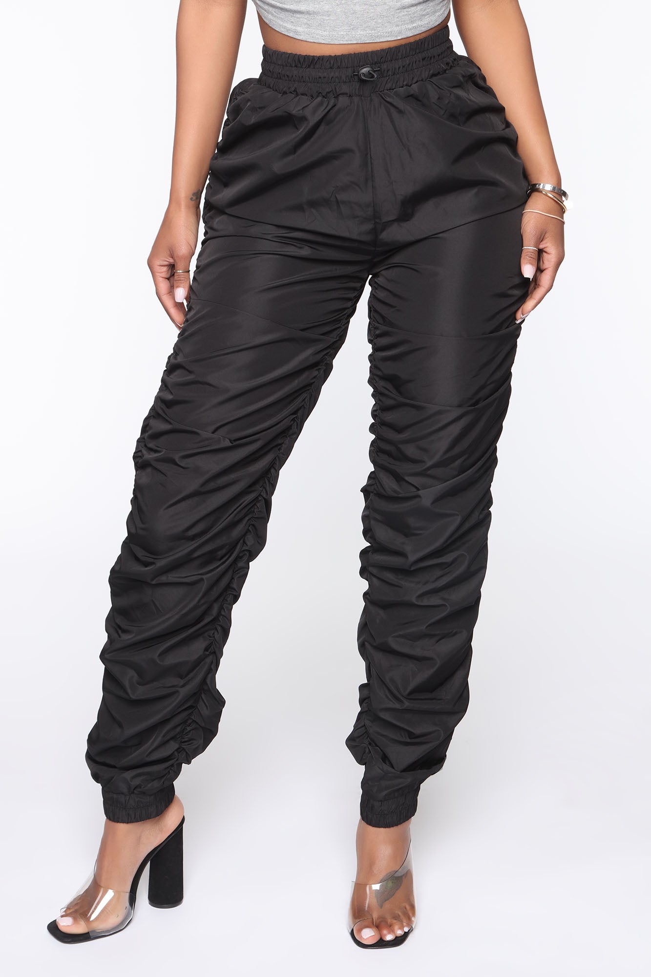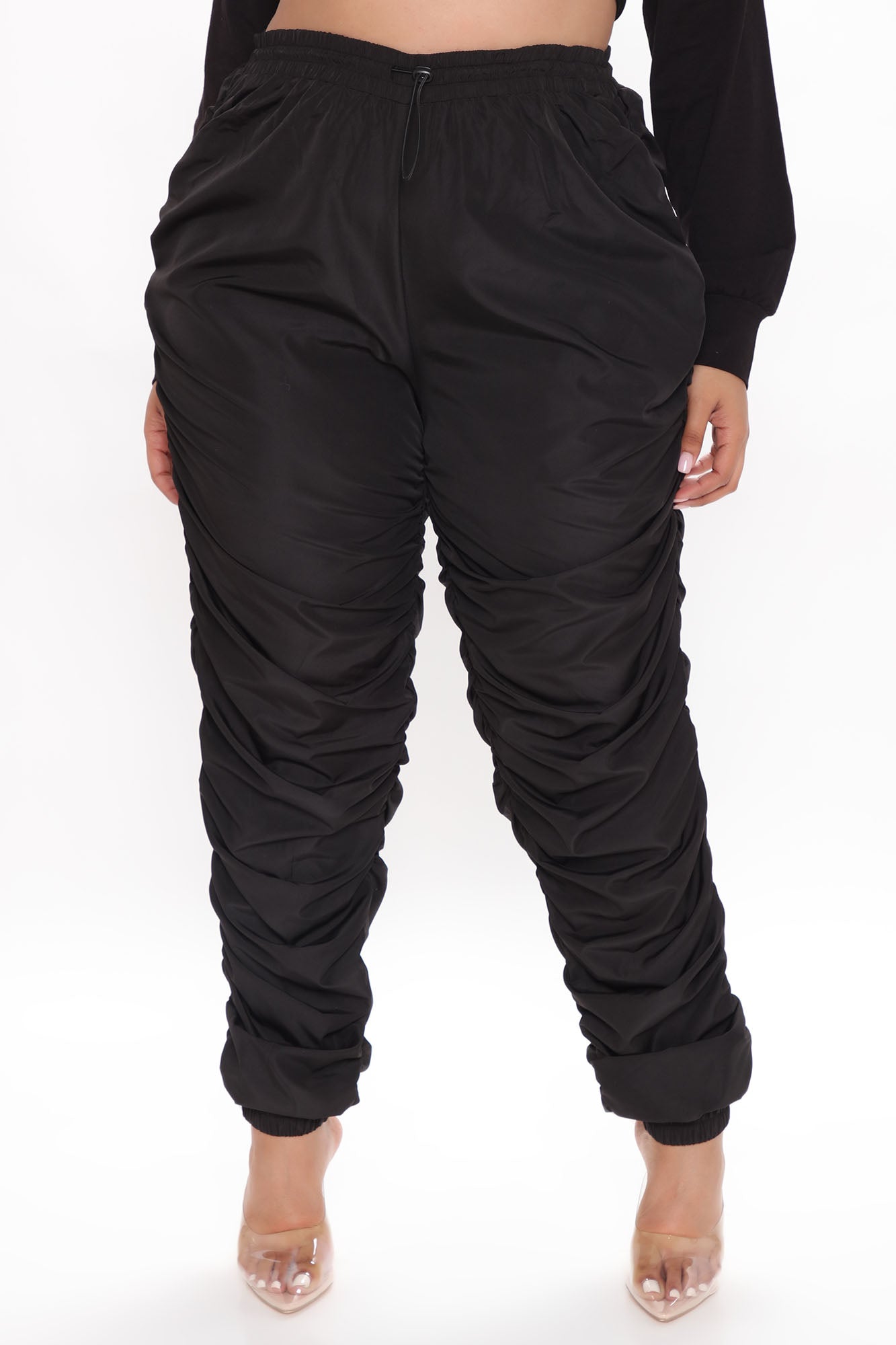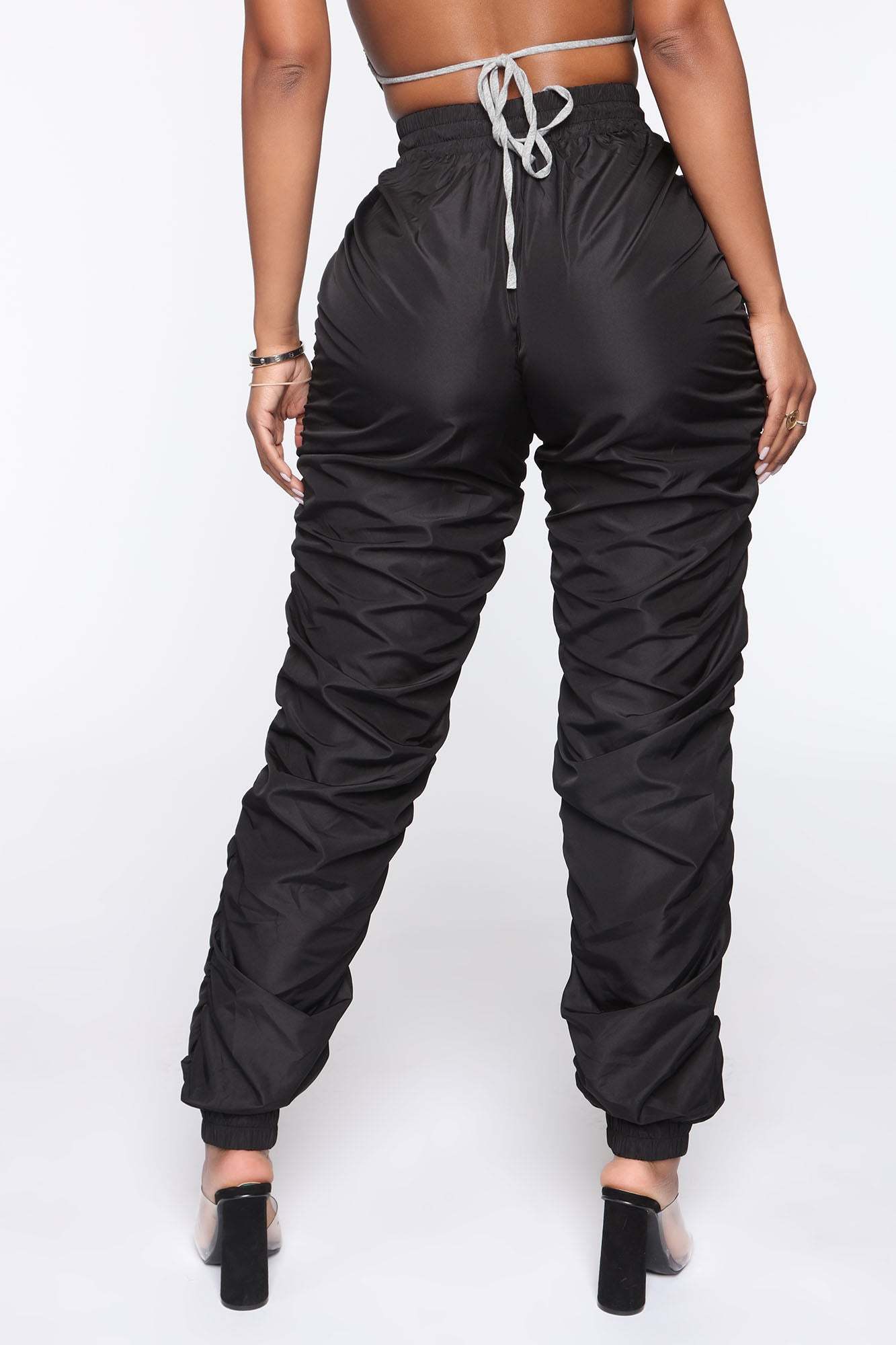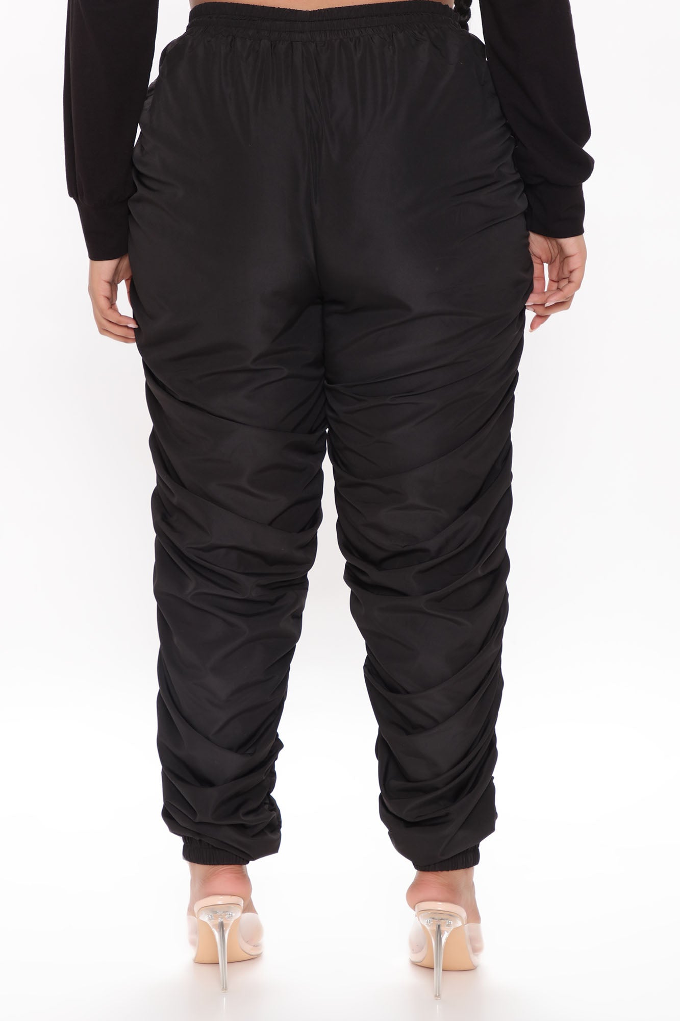 Sporty Girl Ruched Jogger Parachute Pant - Black