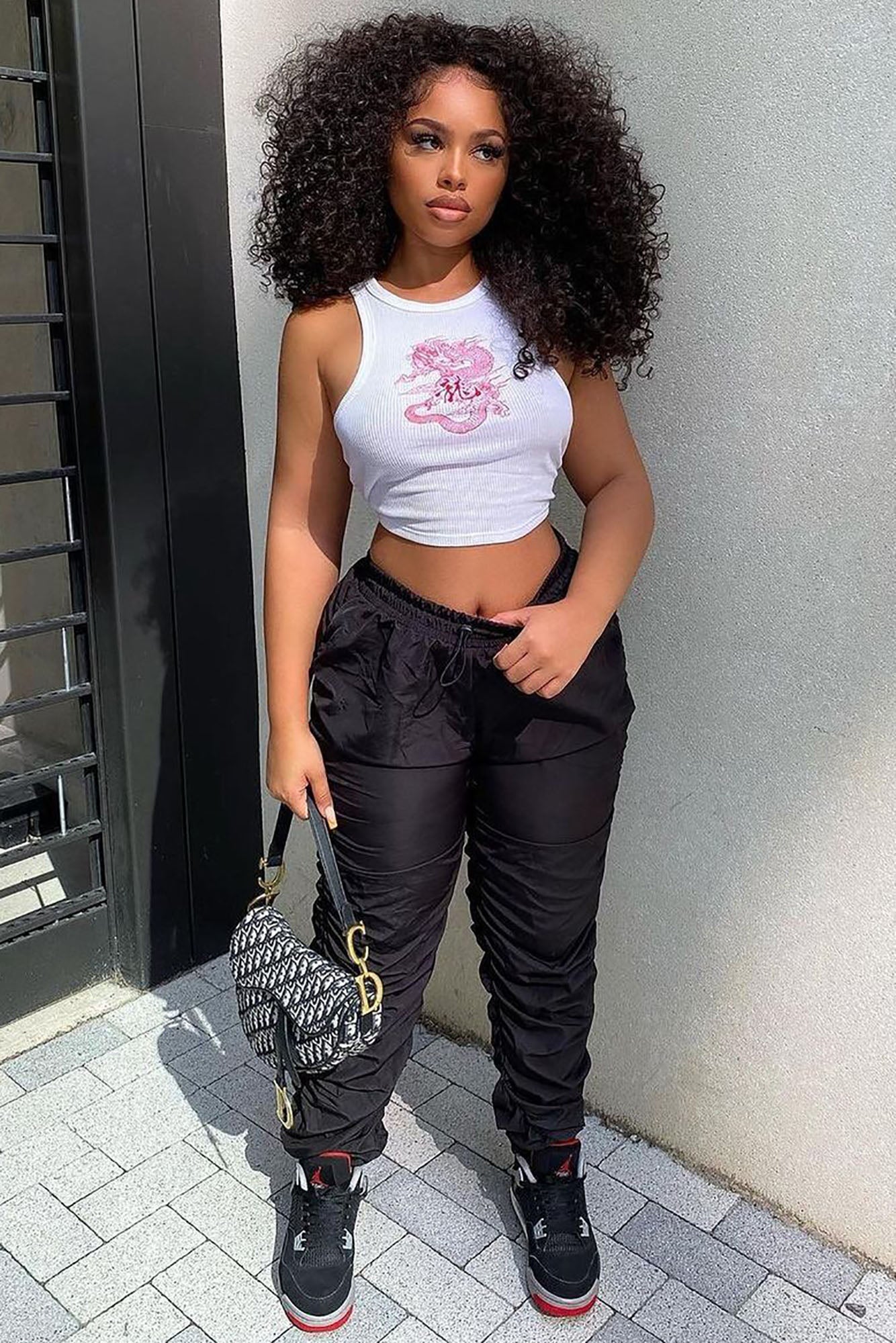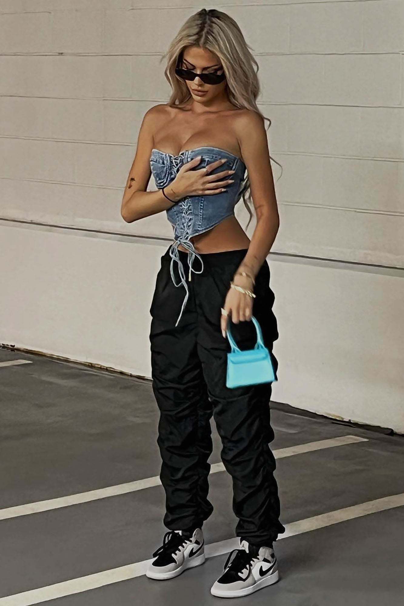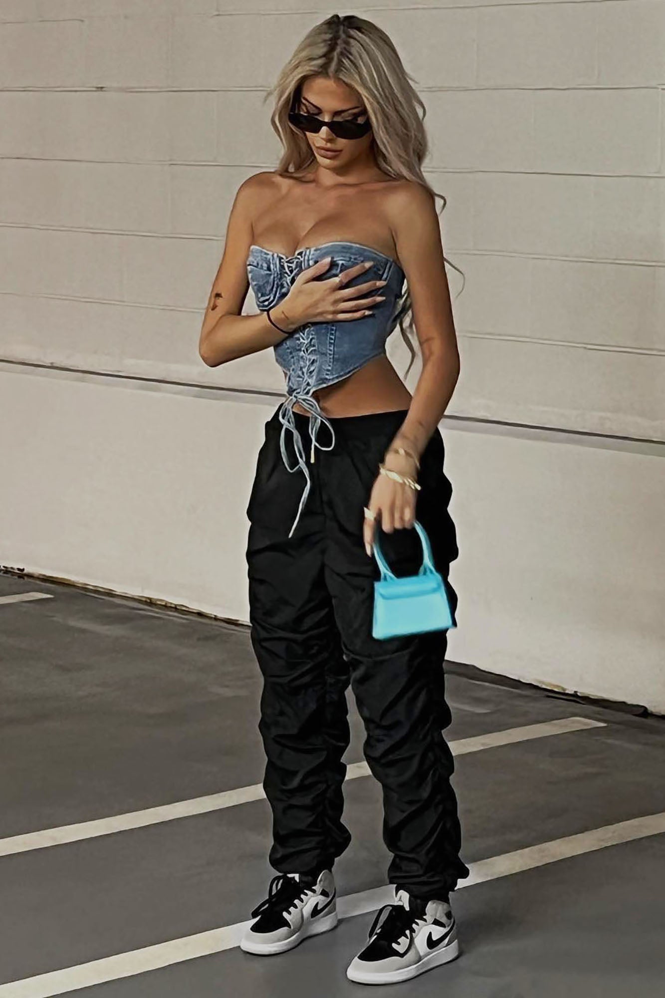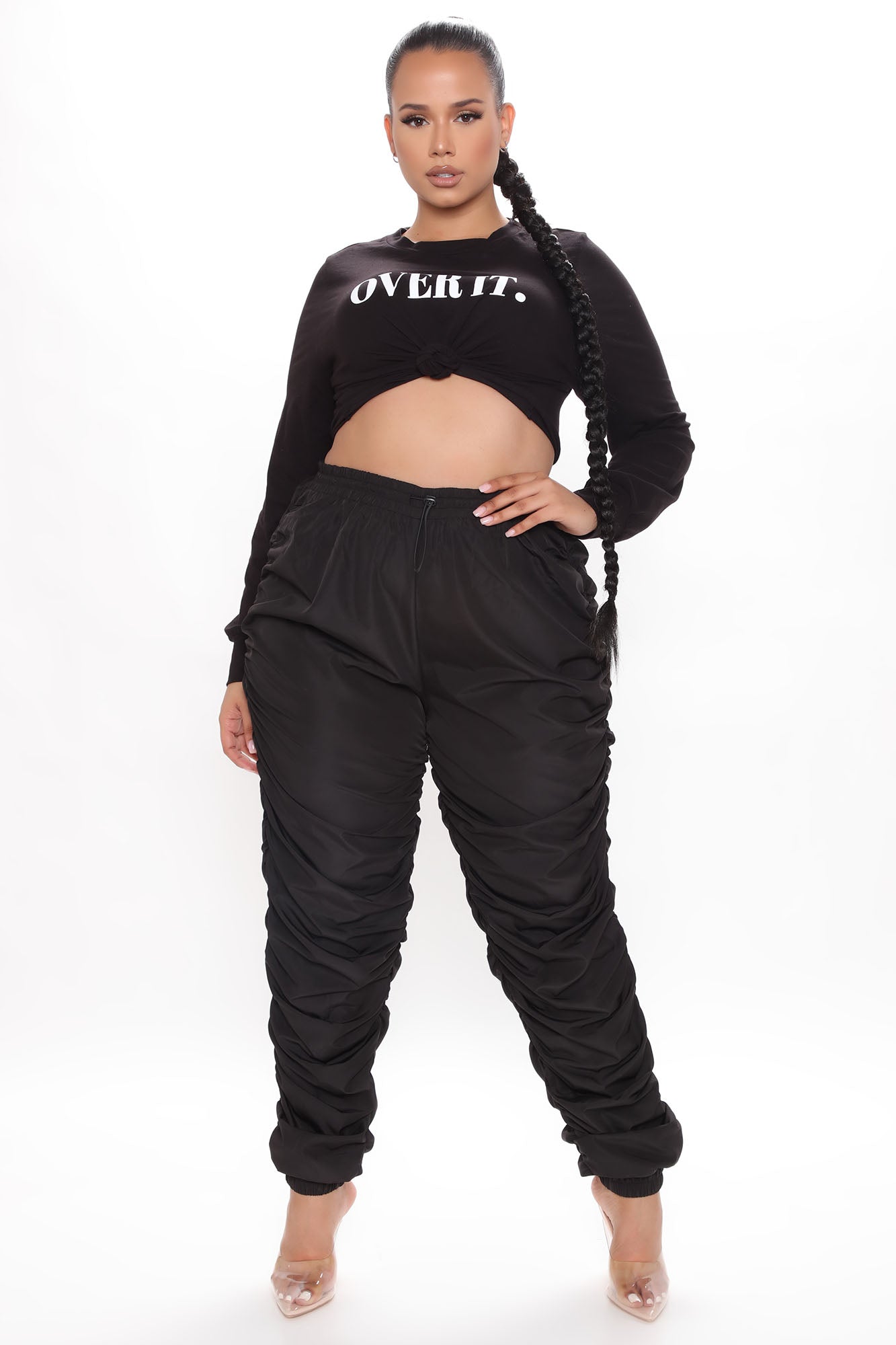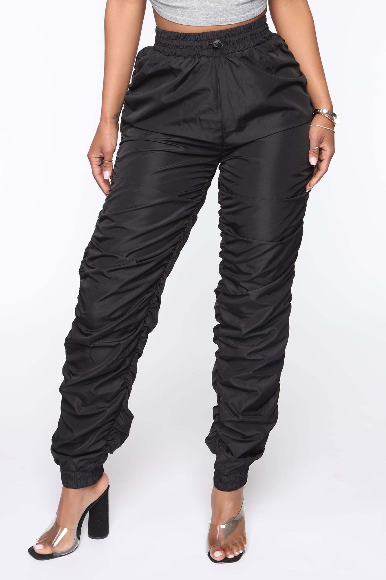 Sporty Girl Ruched Jogger Parachute Pant - Black
