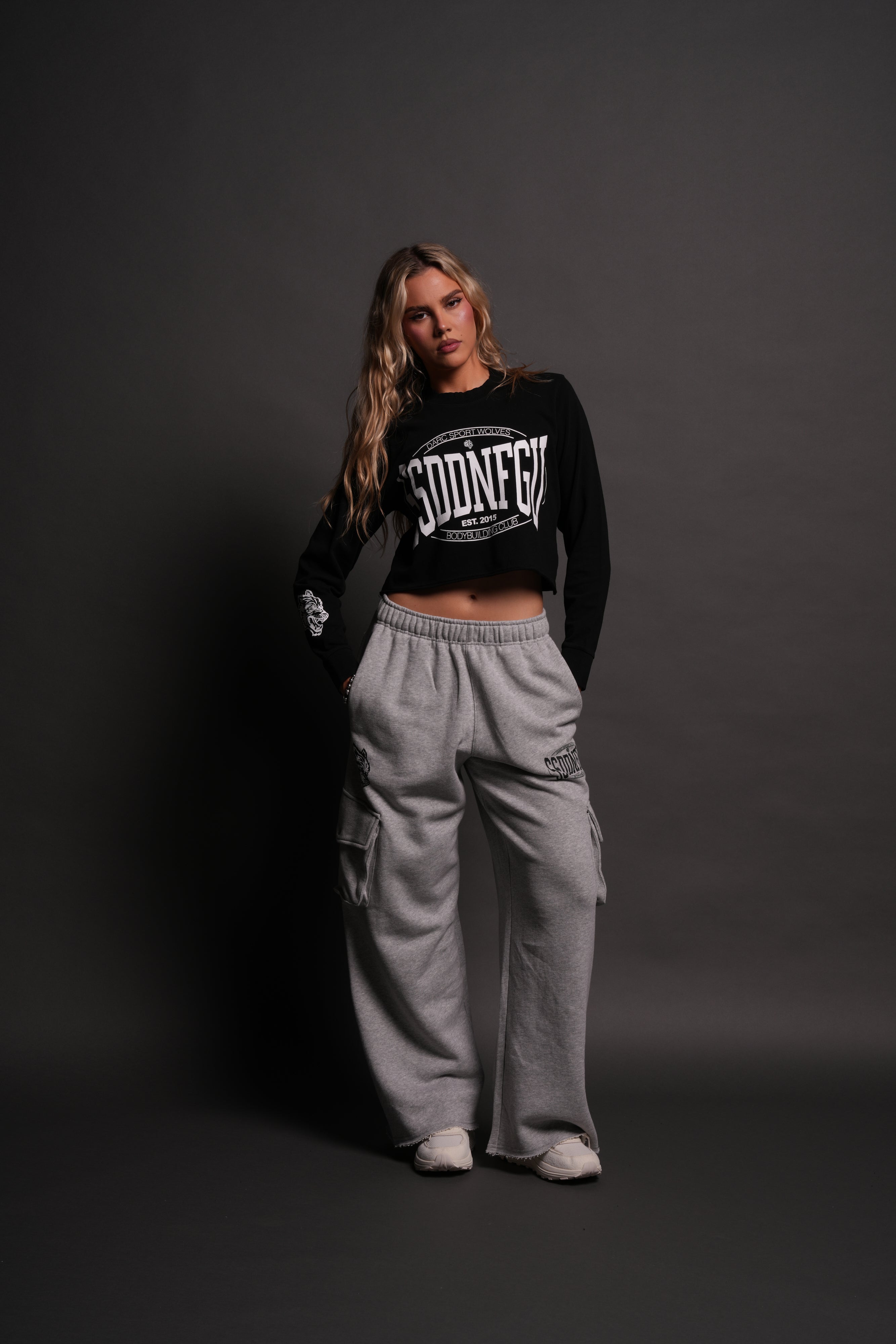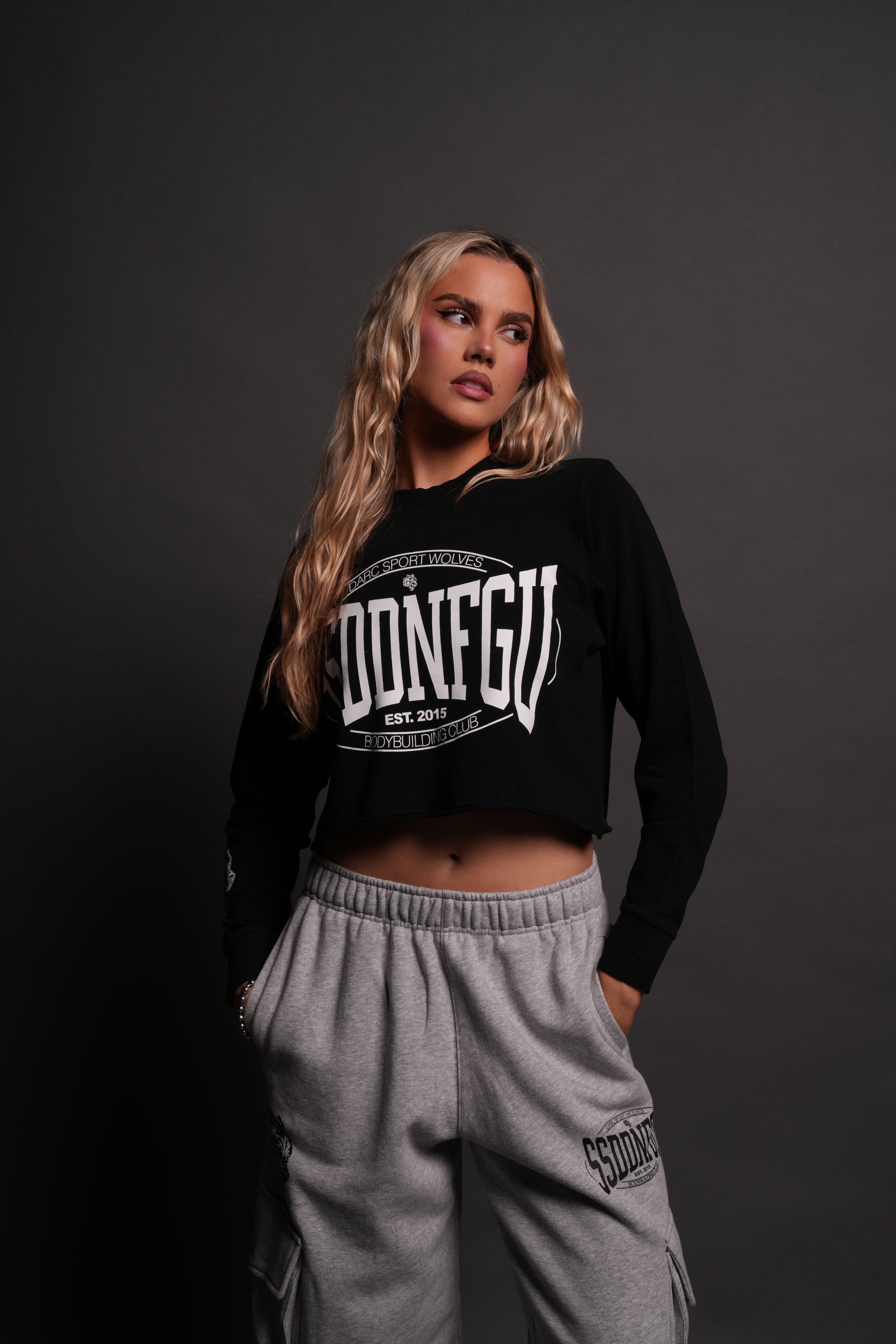 SSDDNFGU FRVR "Premium" Cropped L/S Tee in Black
