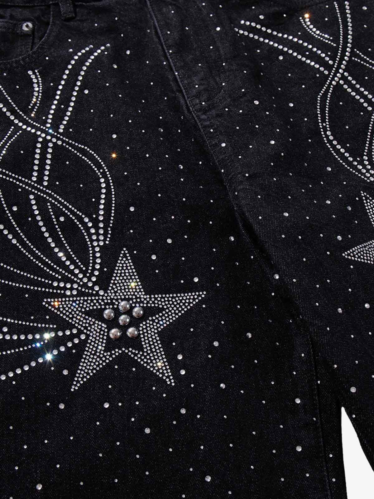 Star Rhinestone Embellished Baggy Jeans