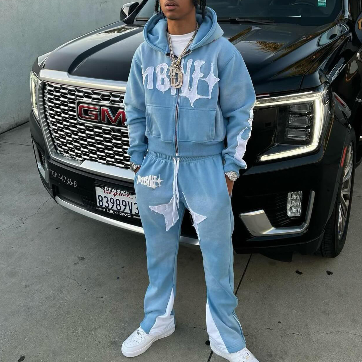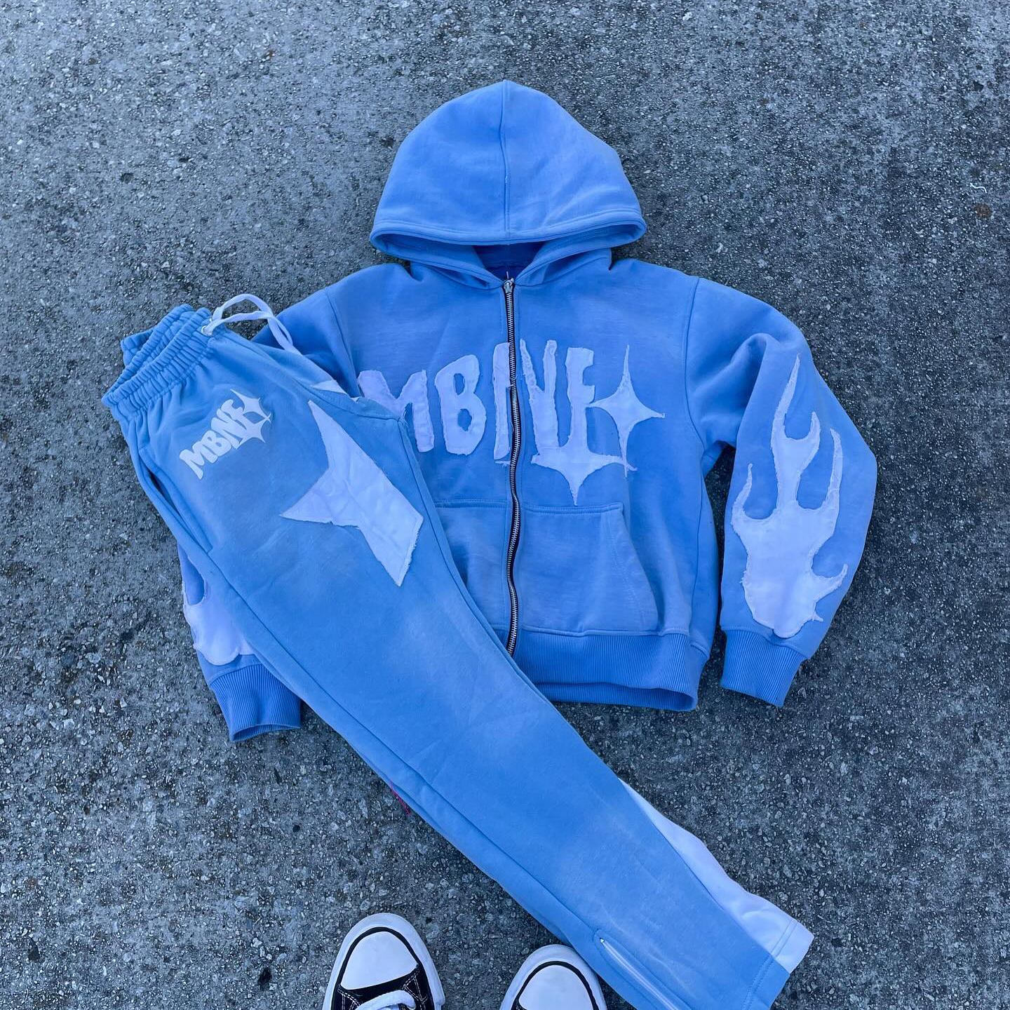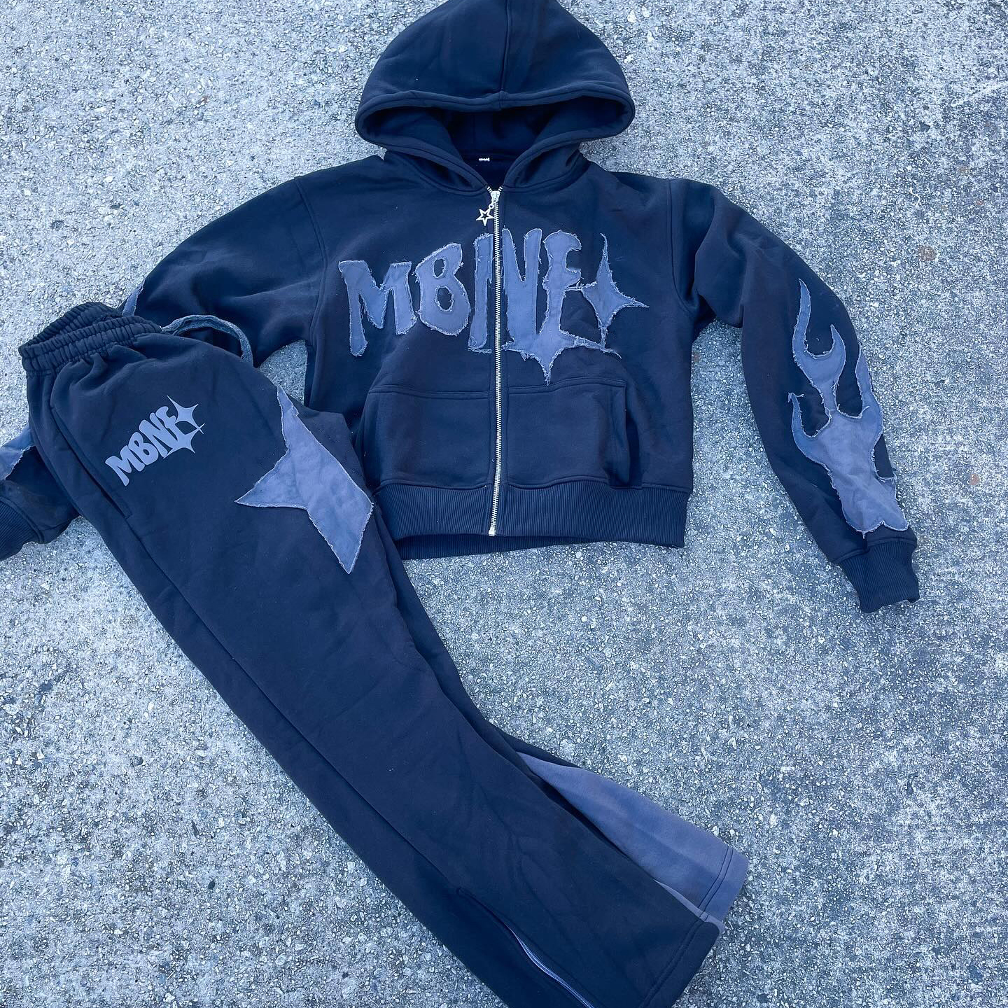 Starry casual street zipper hoodie trousers two-piece set