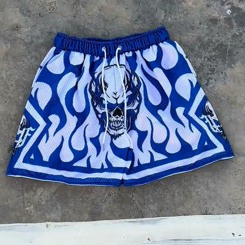 Street Flame Skull Print Mesh Shorts