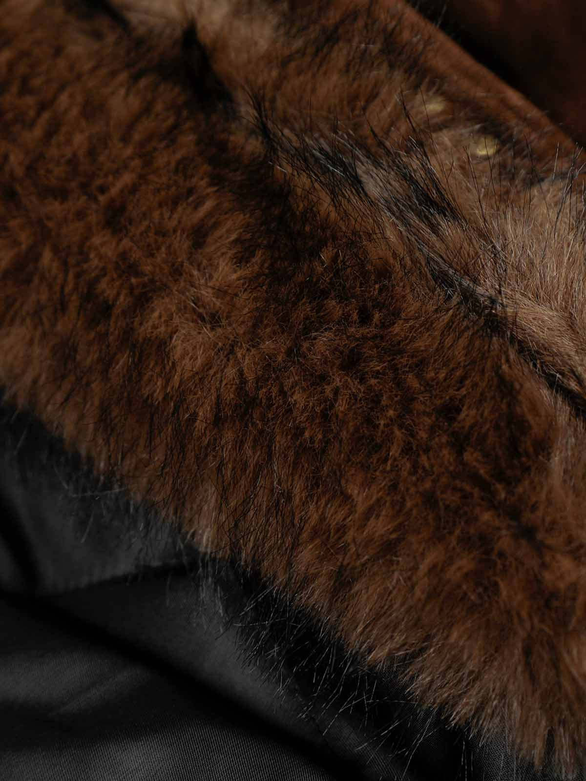 Streetwear Metal Clip Faux Fur Hooded Suede Bomber Jacket