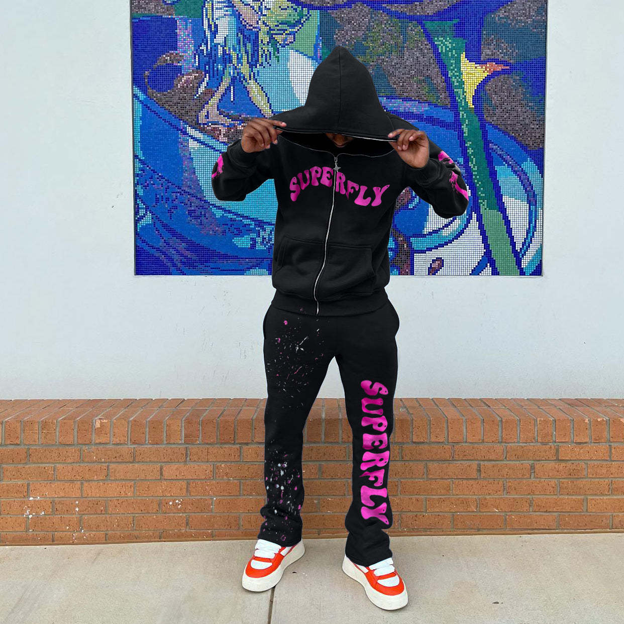 Stylish Casual Letter Pattern Zip Hoodie Set
