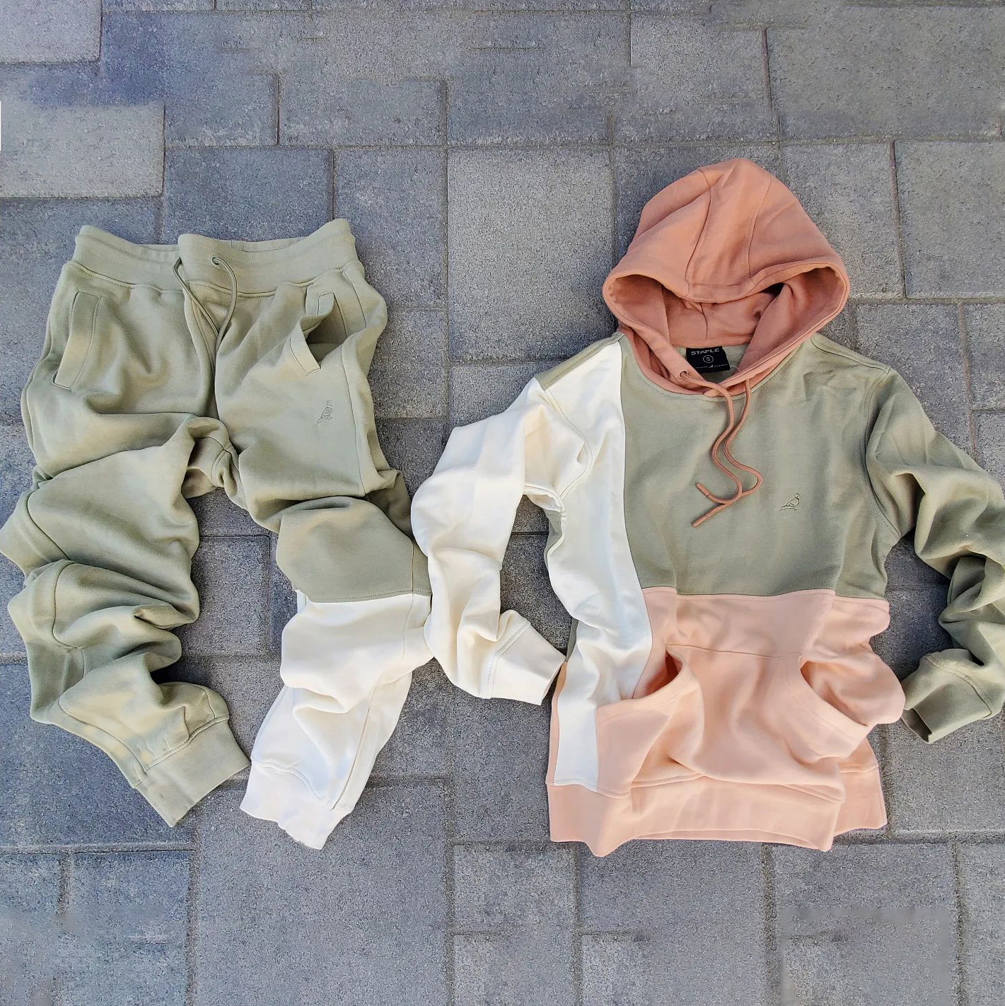 Stylish color block casual hoodie set