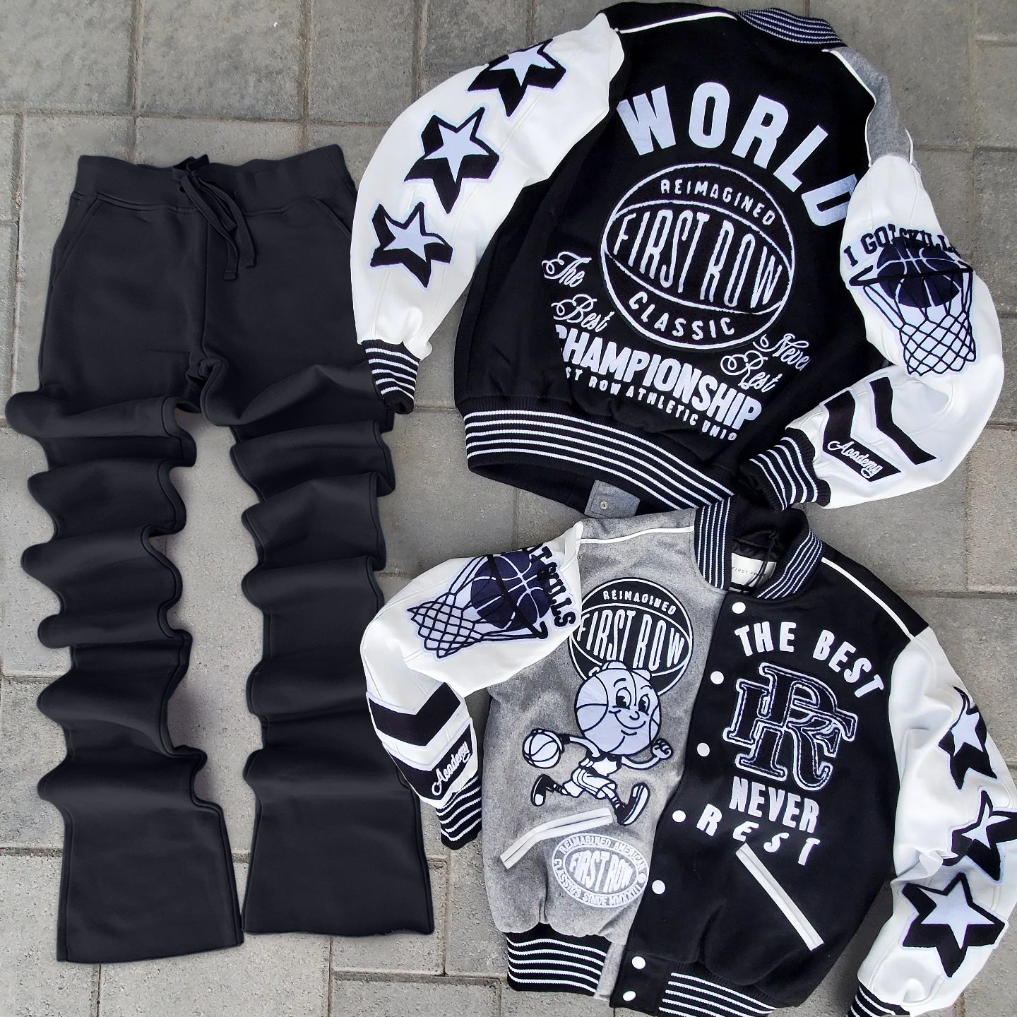 Stylish Contrast Color Baseball Jacket and Flared Pants Suit