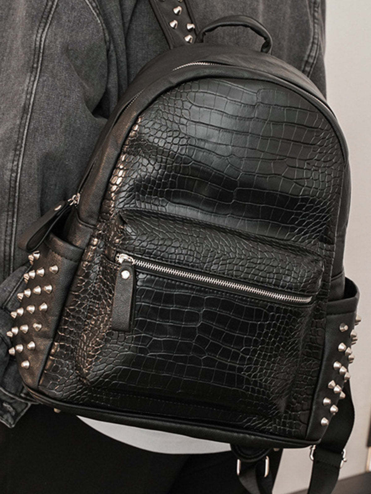 Rivet Crocodile-Print Backpack - 2464