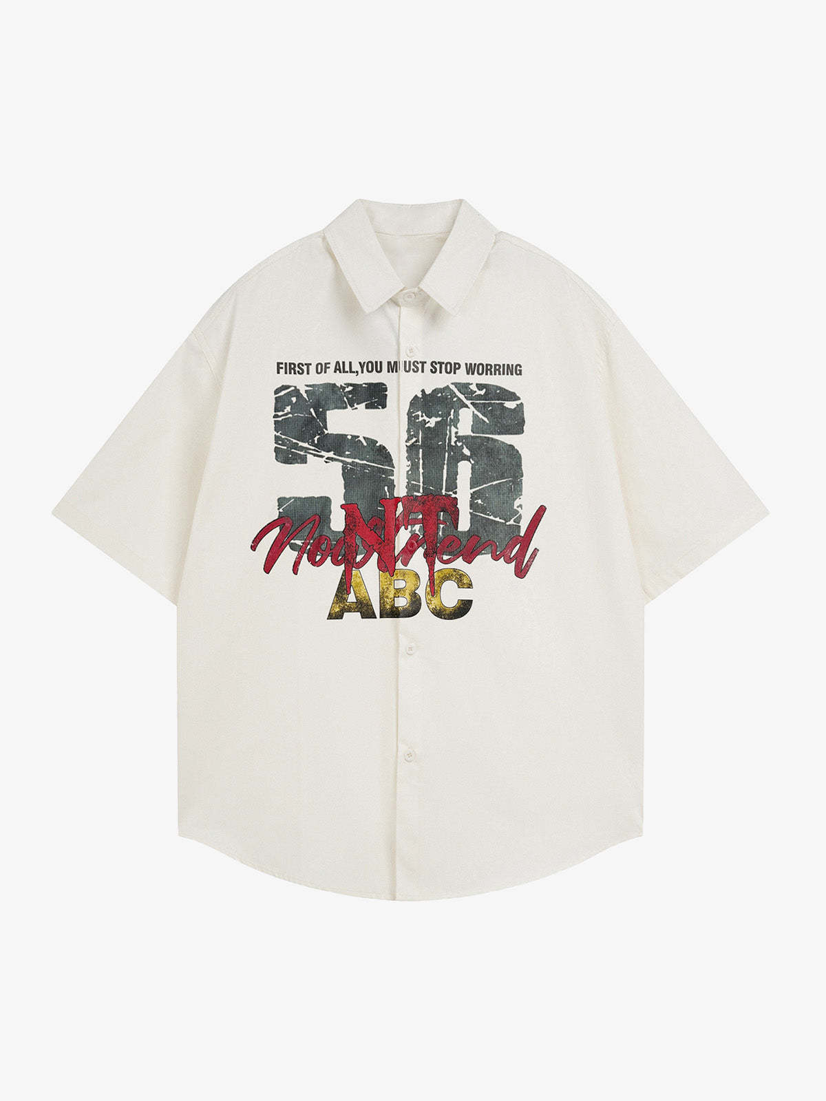 Retro Letter Print Short Sleeve Shirt - 2426