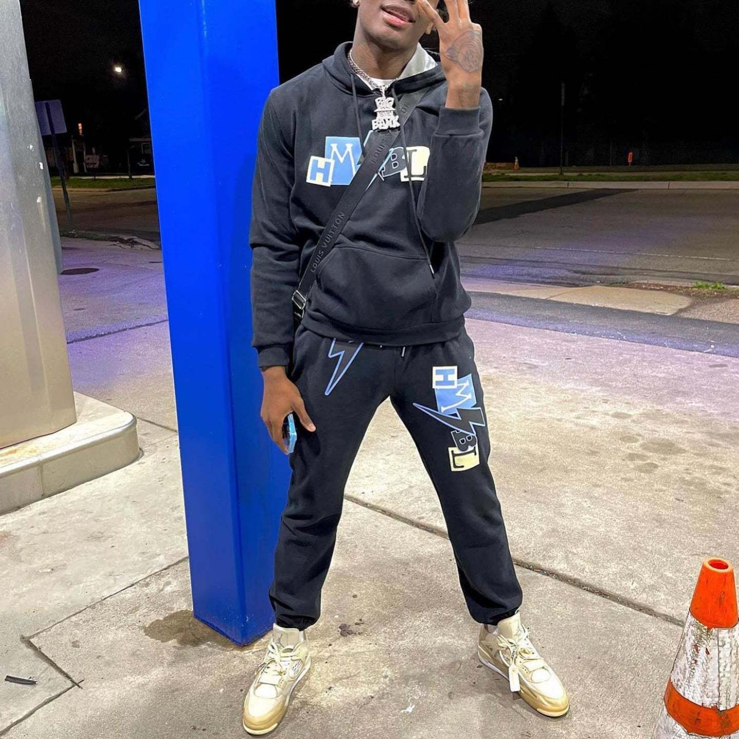 Stylish Lightning Pattern Casual Hoodie Set