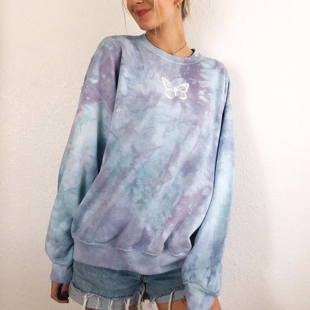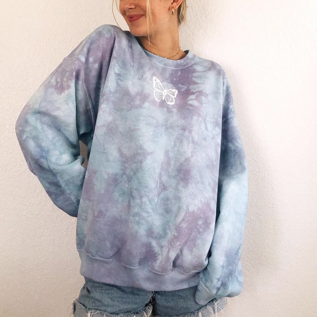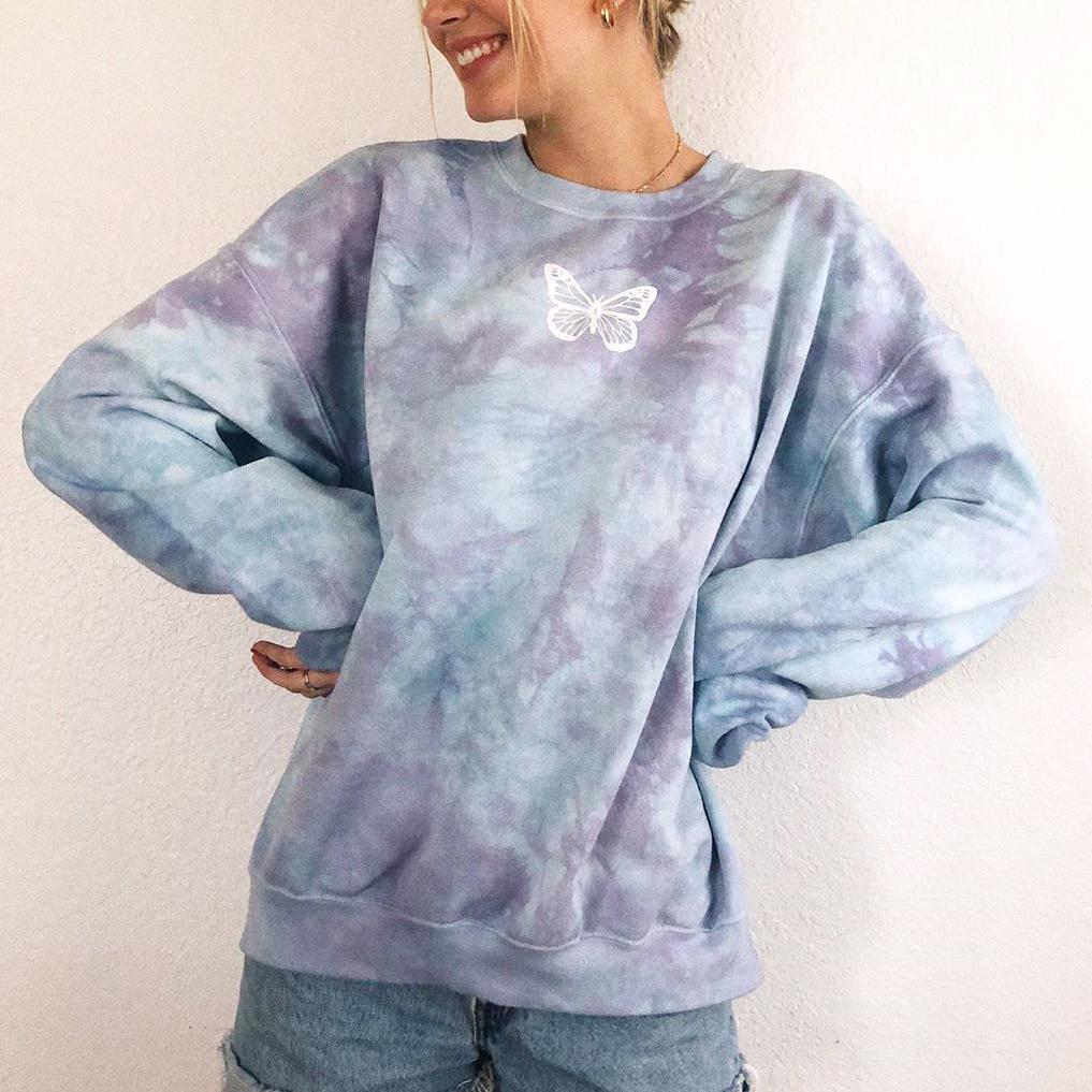 Stylish Tie-dye Butterfly Print Loose Sweatshirt