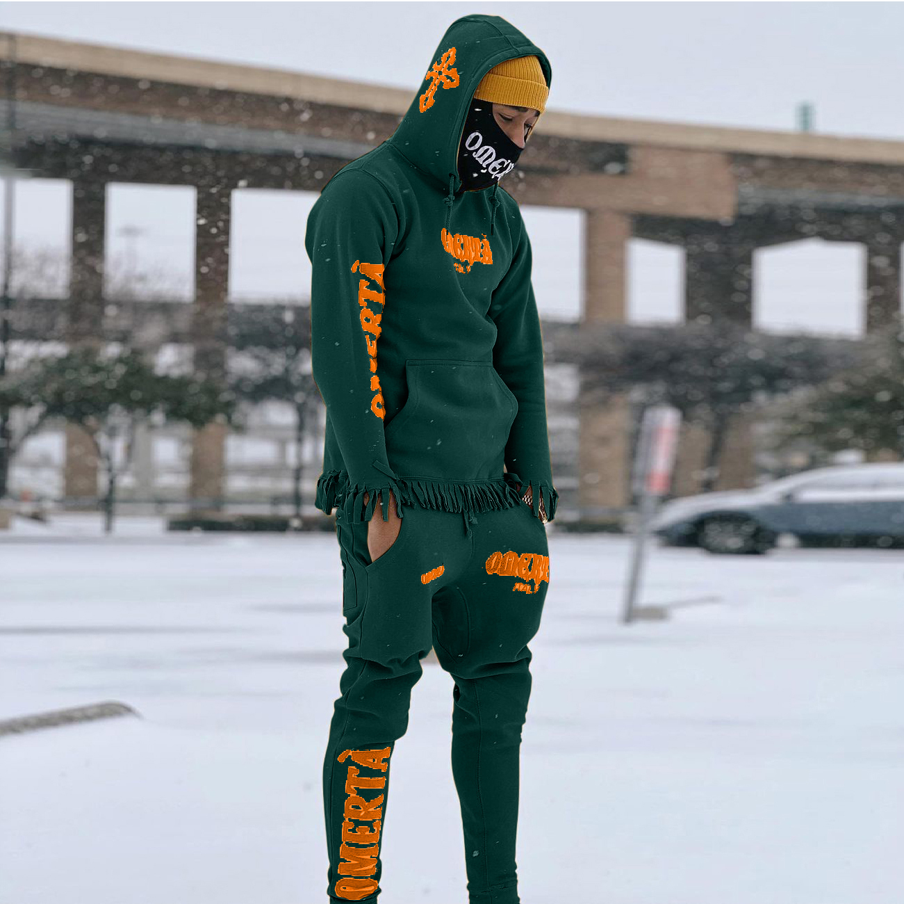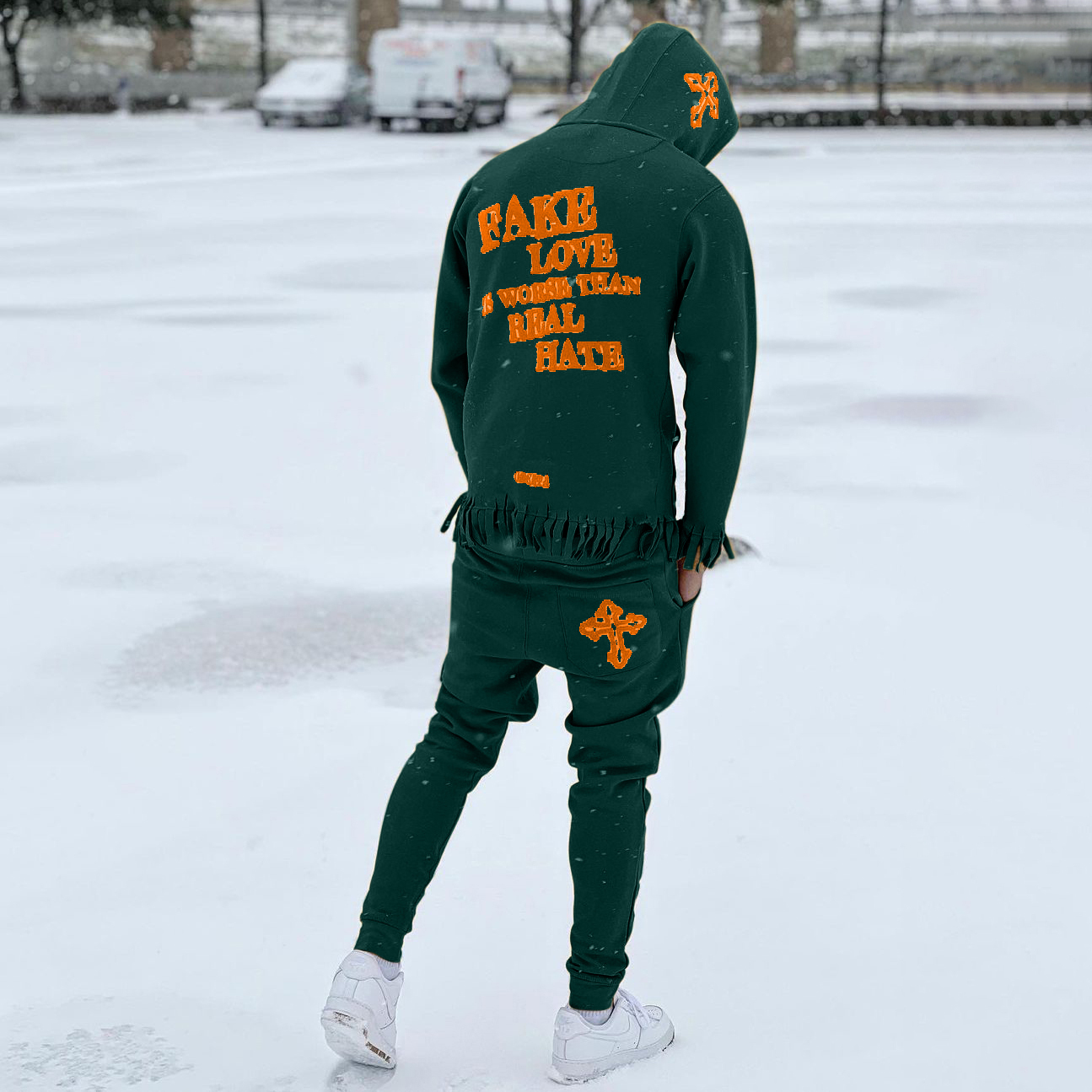 Tassel trendy printed street hoodie set