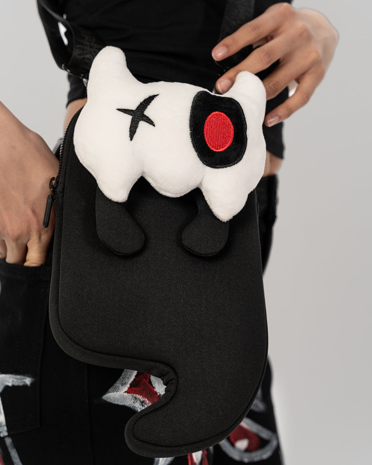 • Fully functional shoulder bag with embroidered plushy head