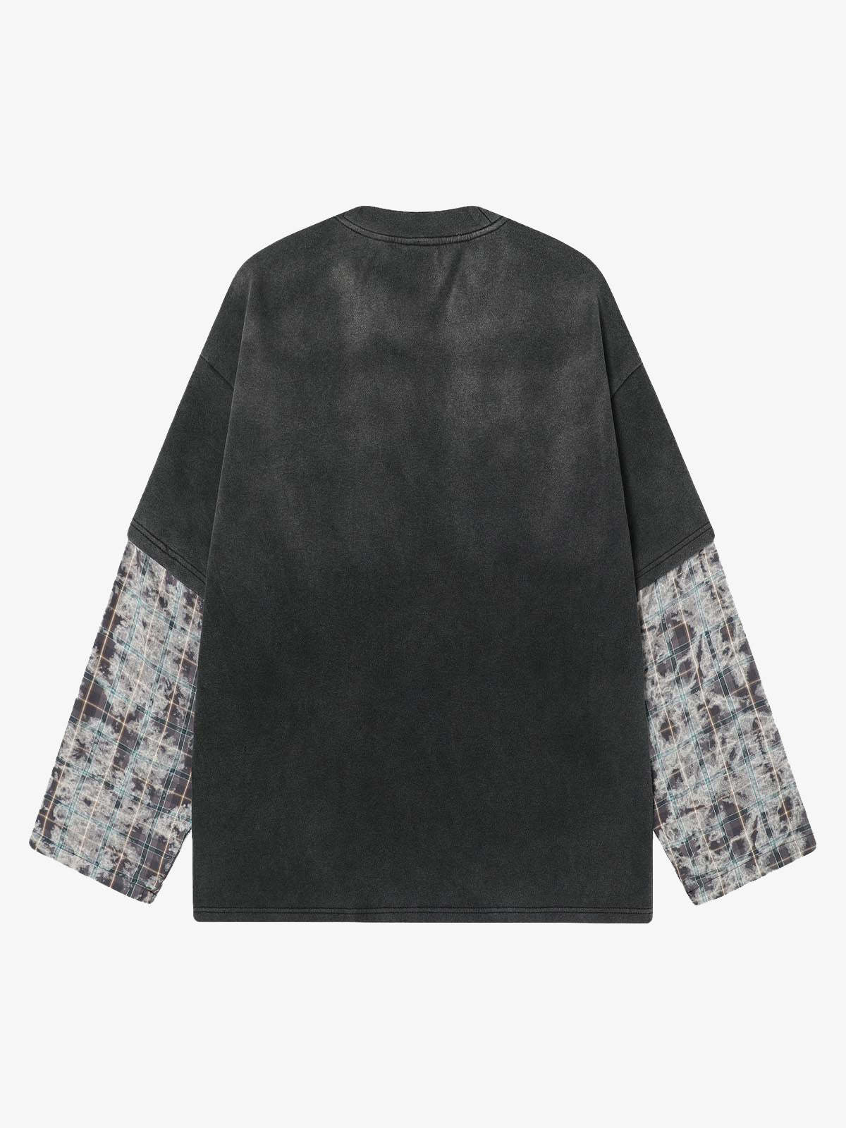 Washed Faux Two-Piece Racing Long Sleeve T-shirt - 2543
