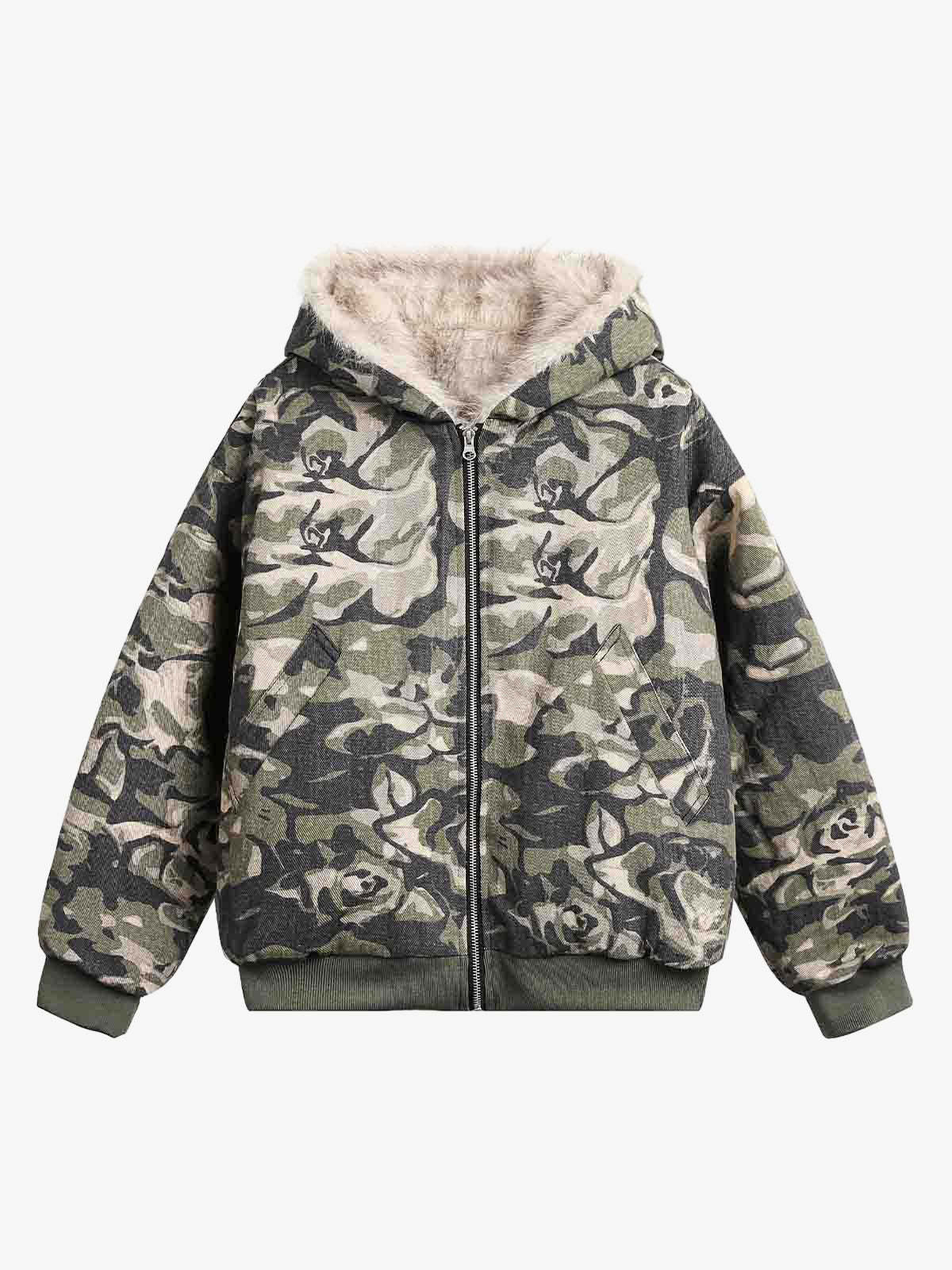 Thesupermade Camouflage Fur Hooded Jacket - 2353