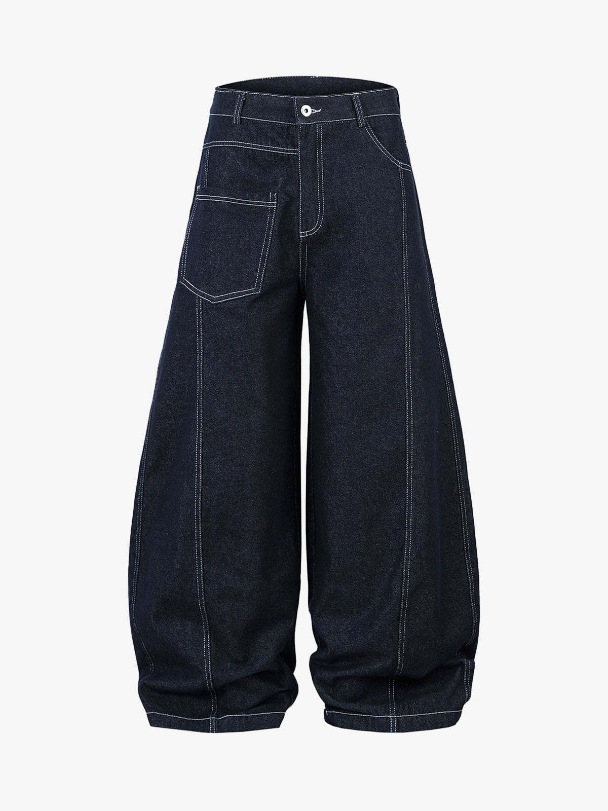 Deconstructed Contrast Stitching Barrel Jeans - 2326