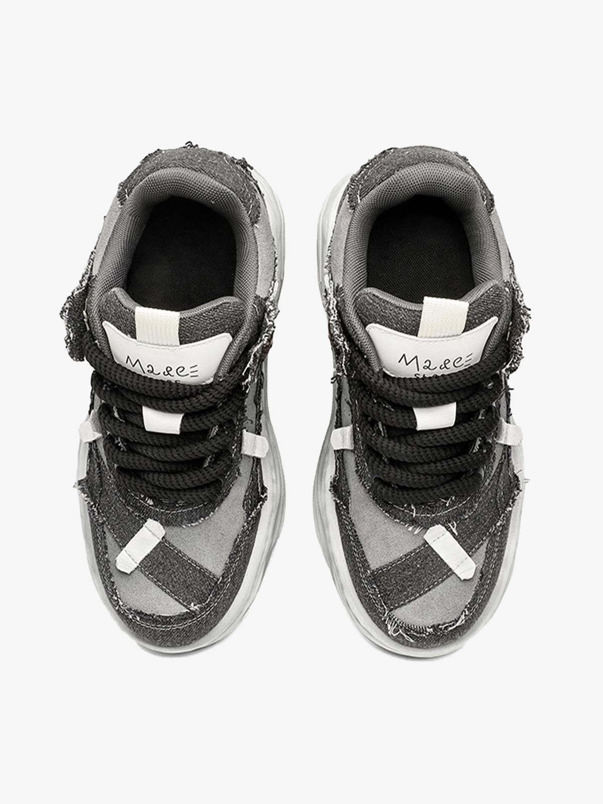 Distressed Deconstructed Split Whisker Platform Sneakers