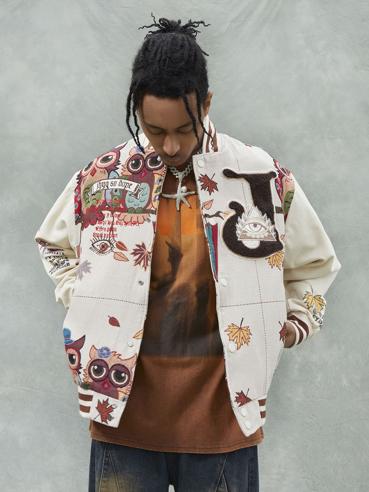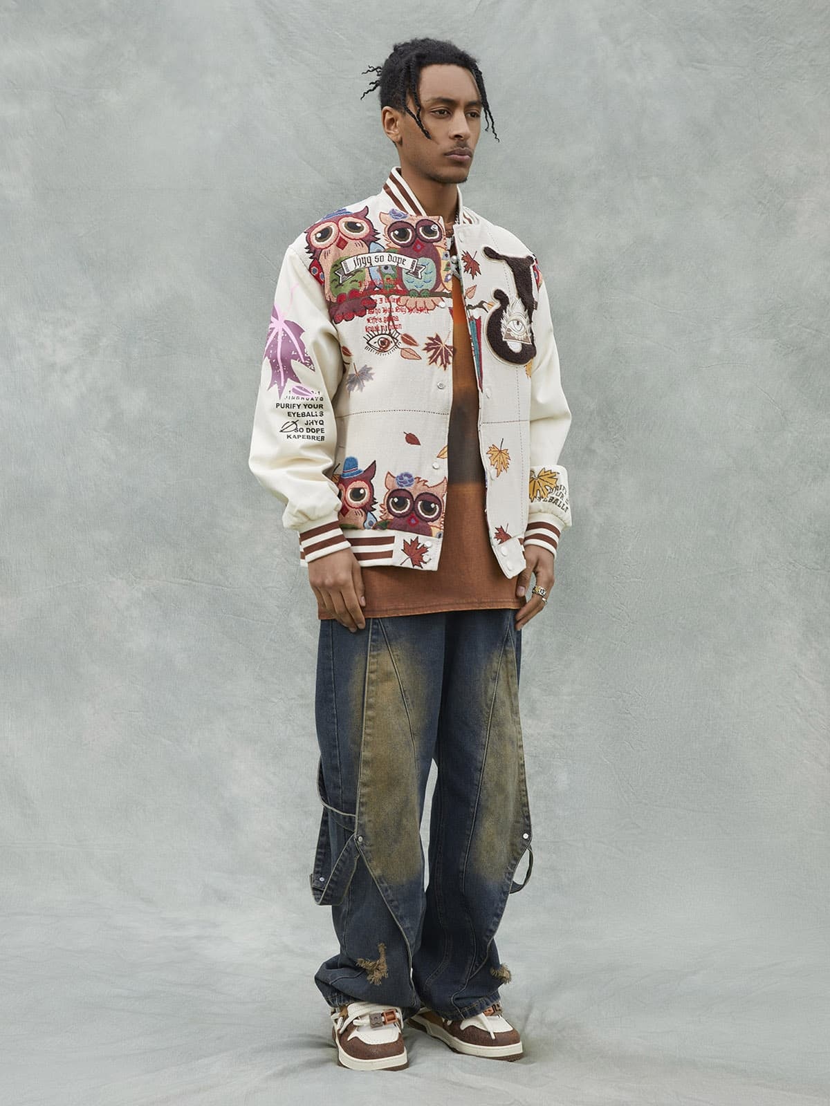 Thesupermade Owl Patch Embroidered Baseball Jersey - 2472