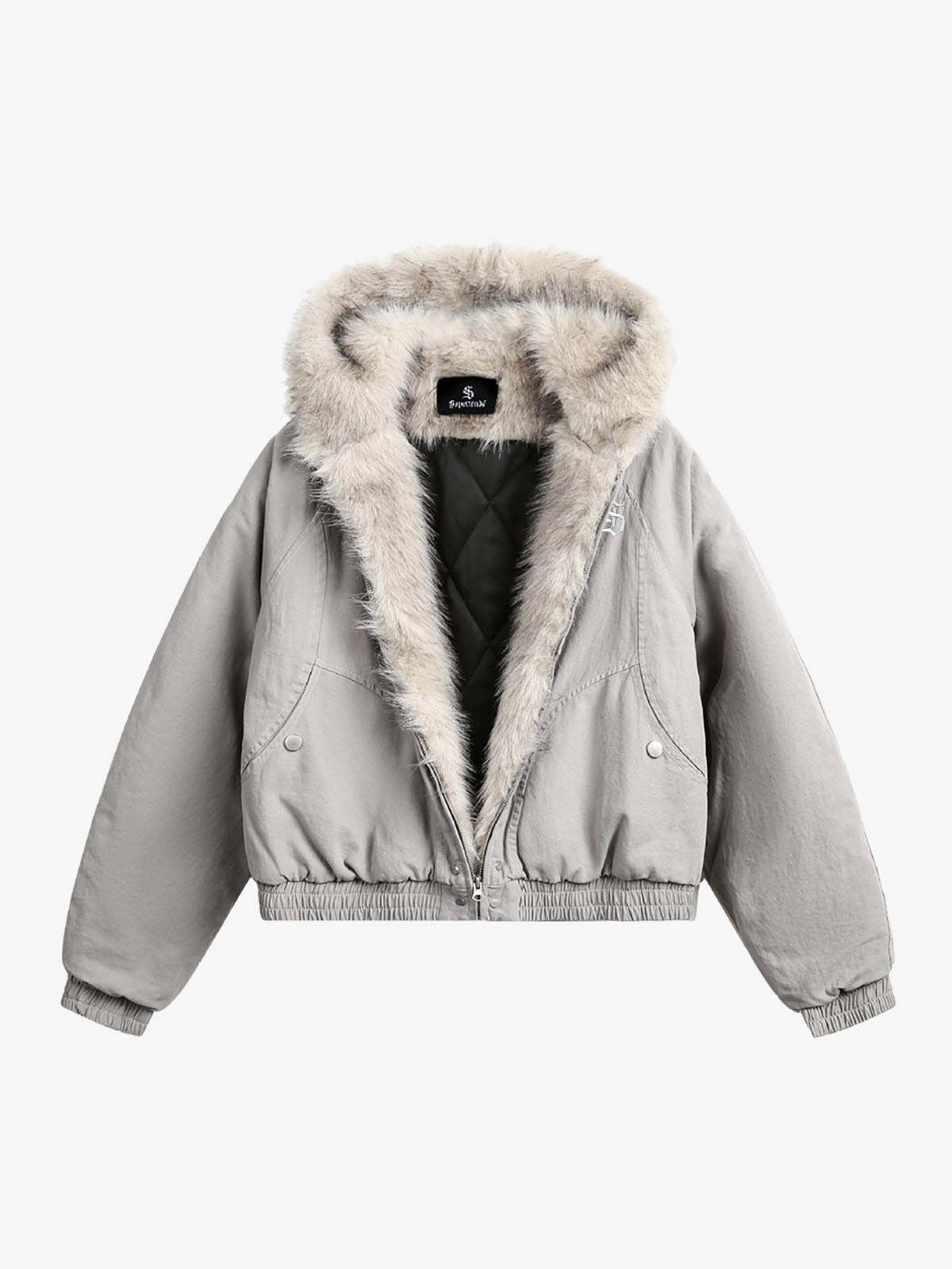 Spliced Fur Hooded Quilted Jacket - 2285