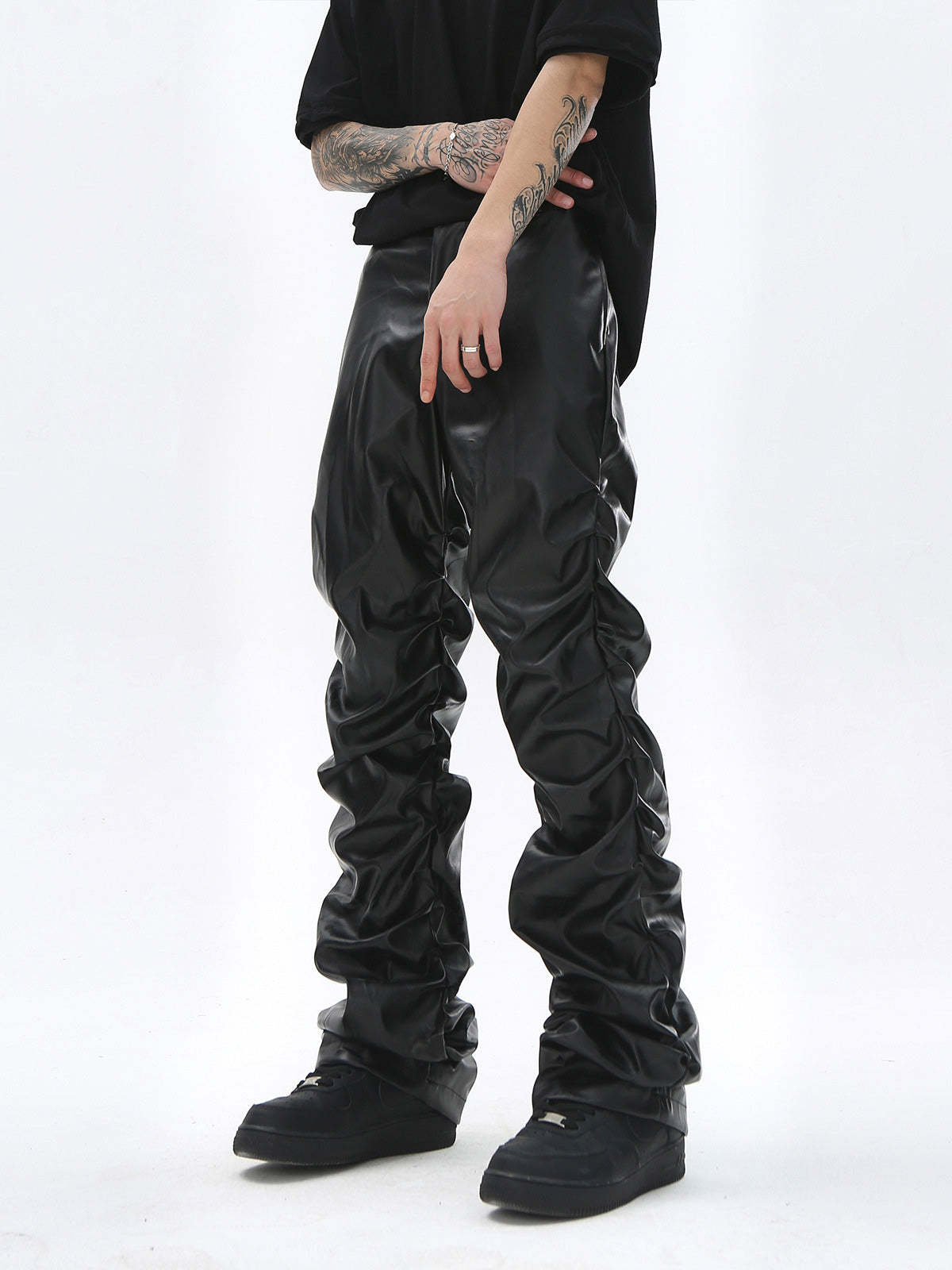 Thesupermade Punk Style Pleated Leather Pants - 2195