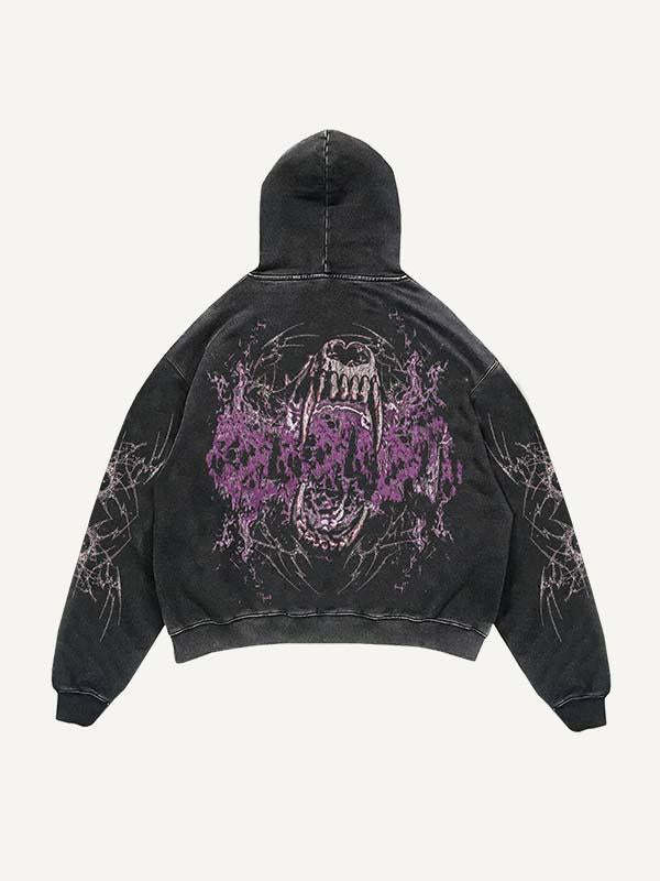 Vampire Fangs&Letter Graphic Print Slant Pockets Hoodie