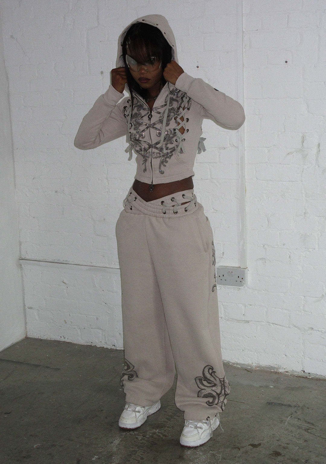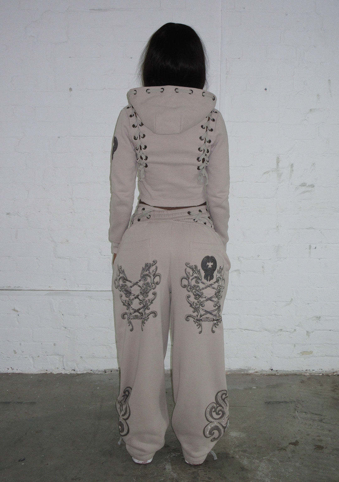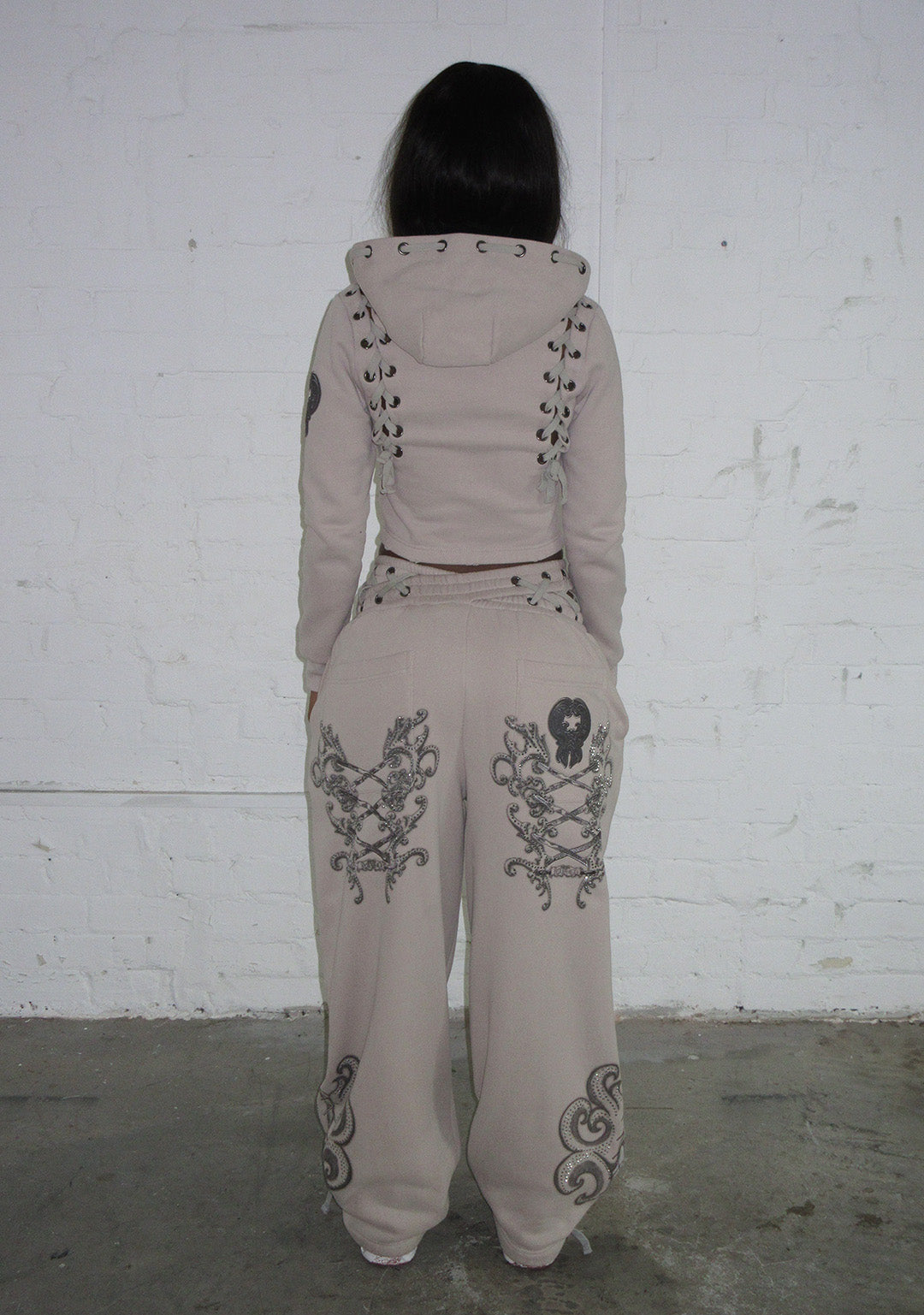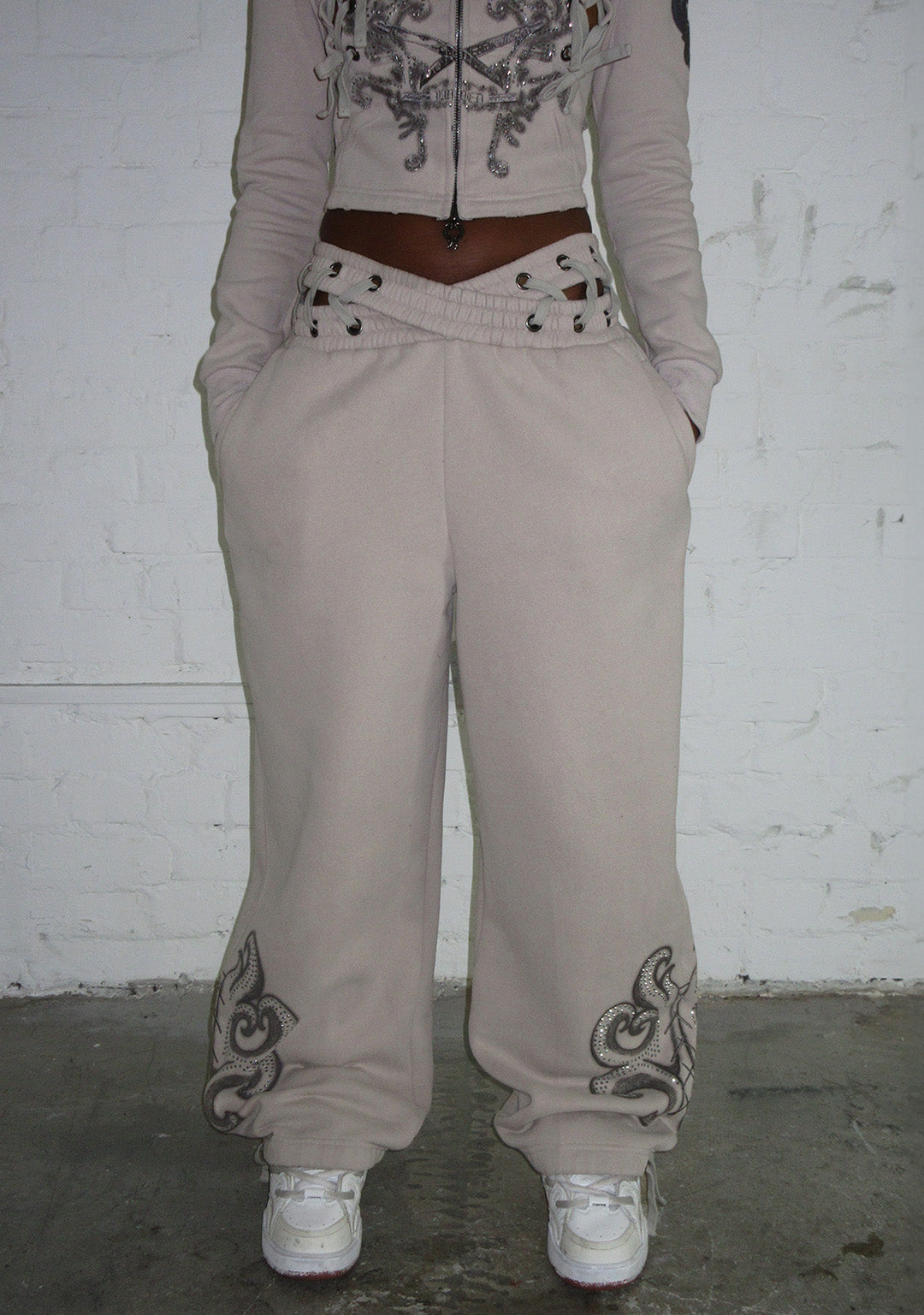 VENDETTA LACE UP OVERSIZED SWEATPANTS BONE