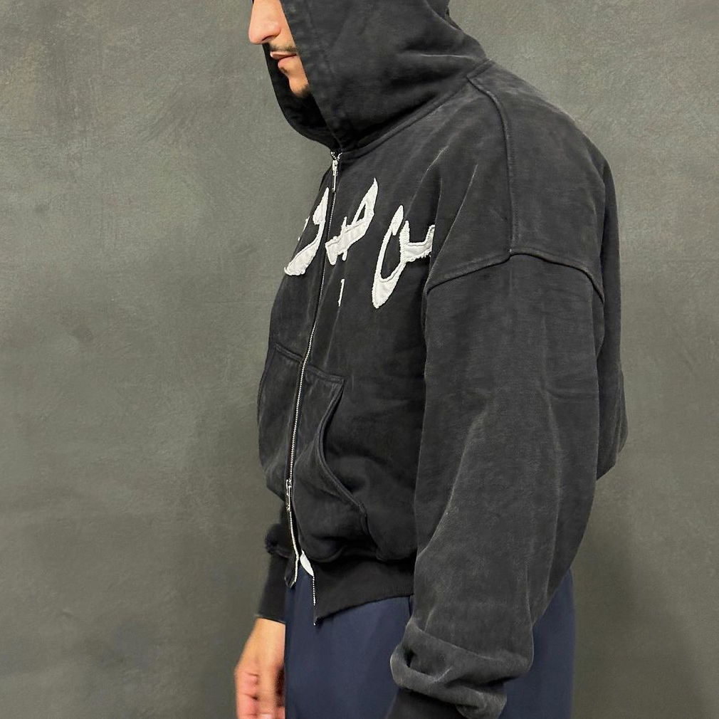 Vintage Applique Double Zip Hoodie