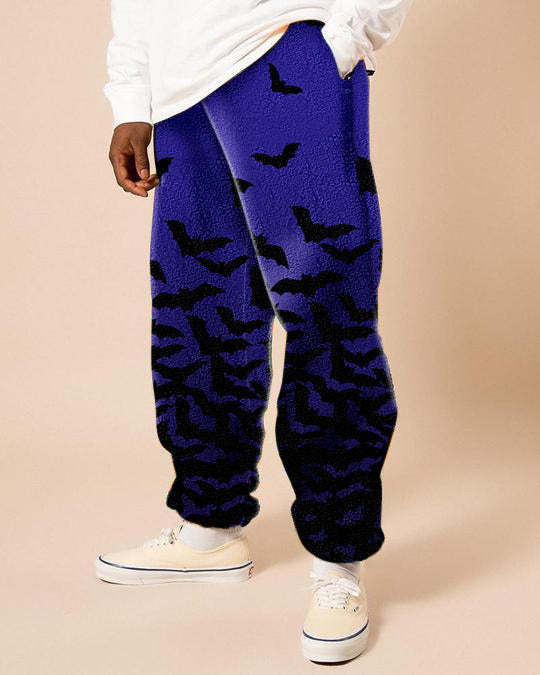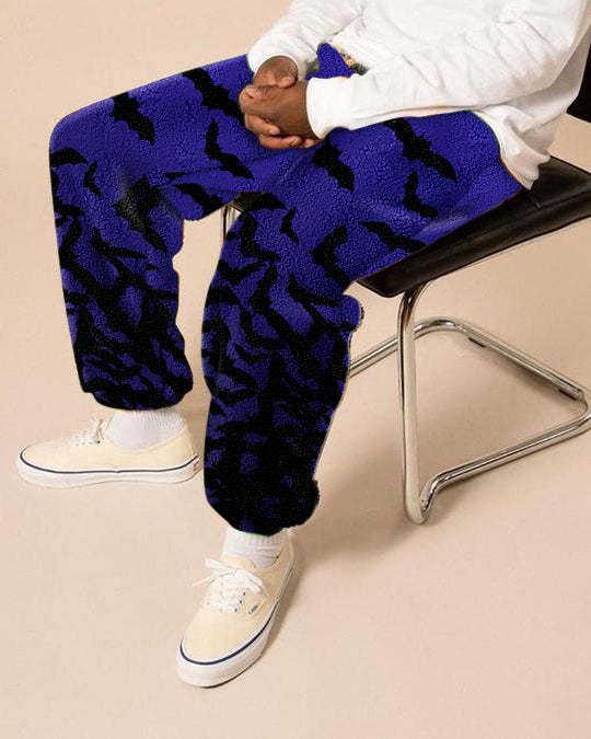 Vintage bat-print polar fleece trousers