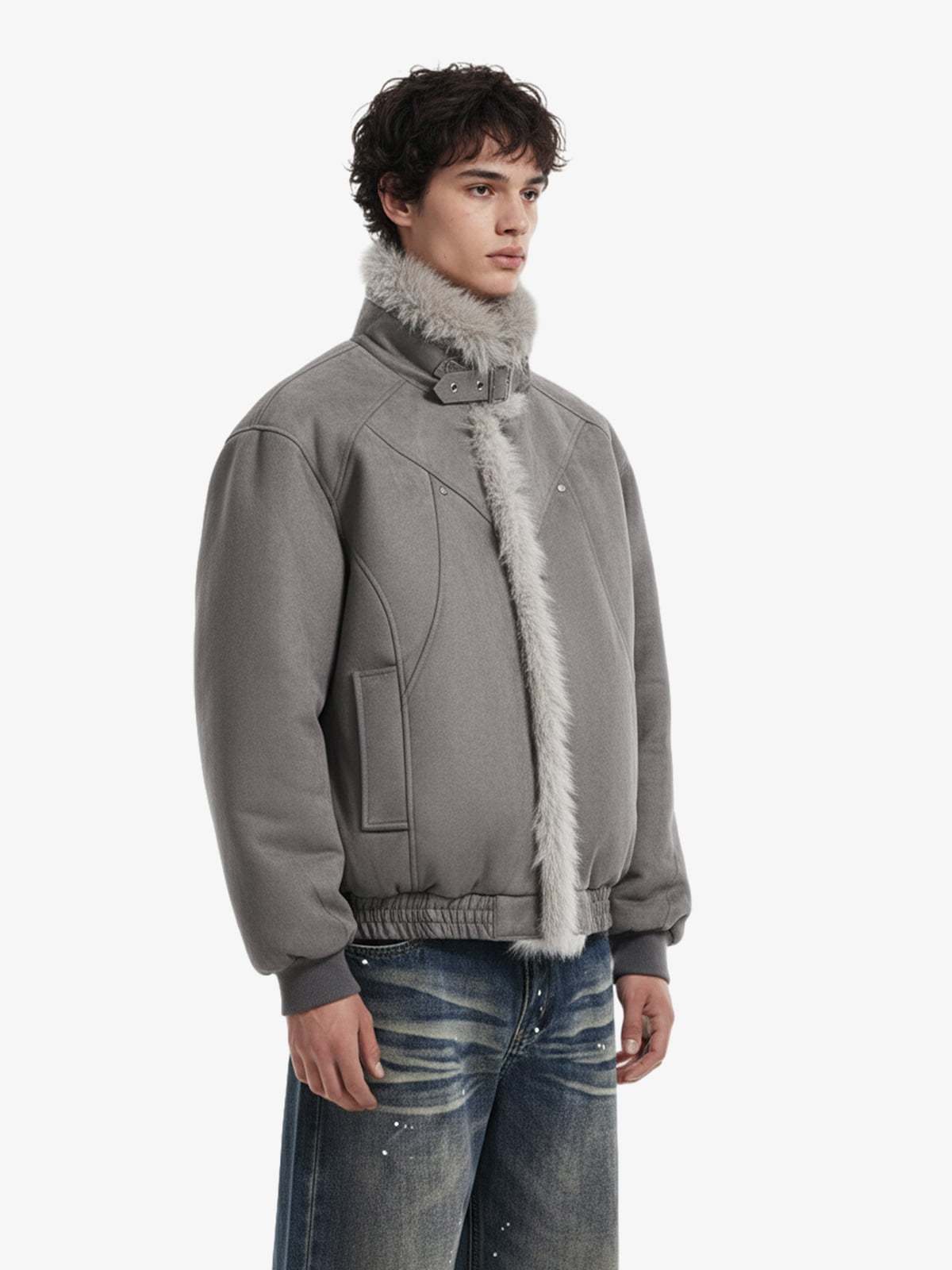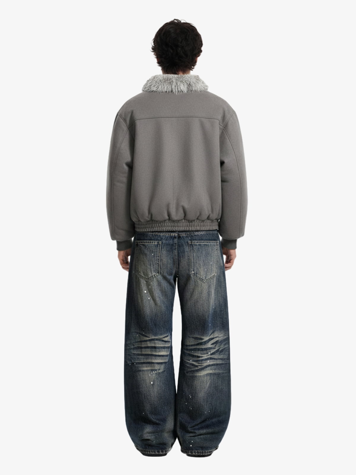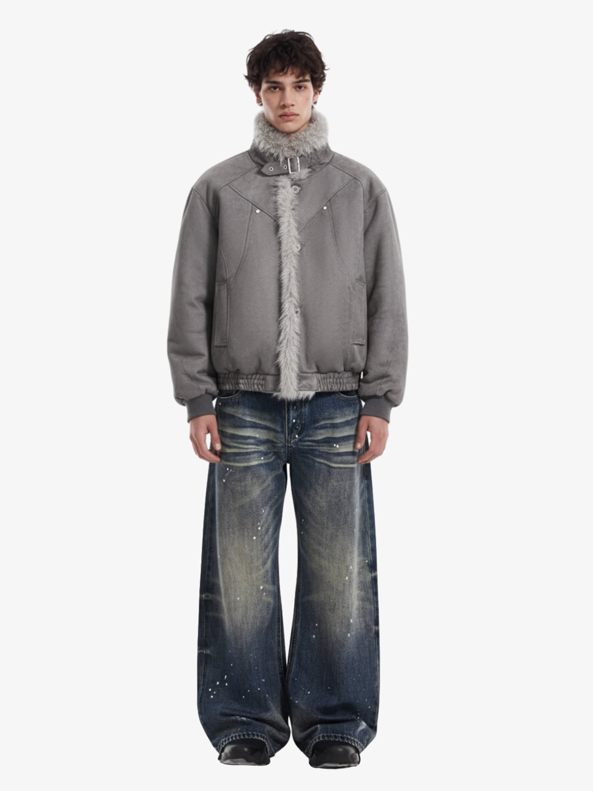 Vintage Faux Fur Trimmed Suede Padded Bomber Jacket