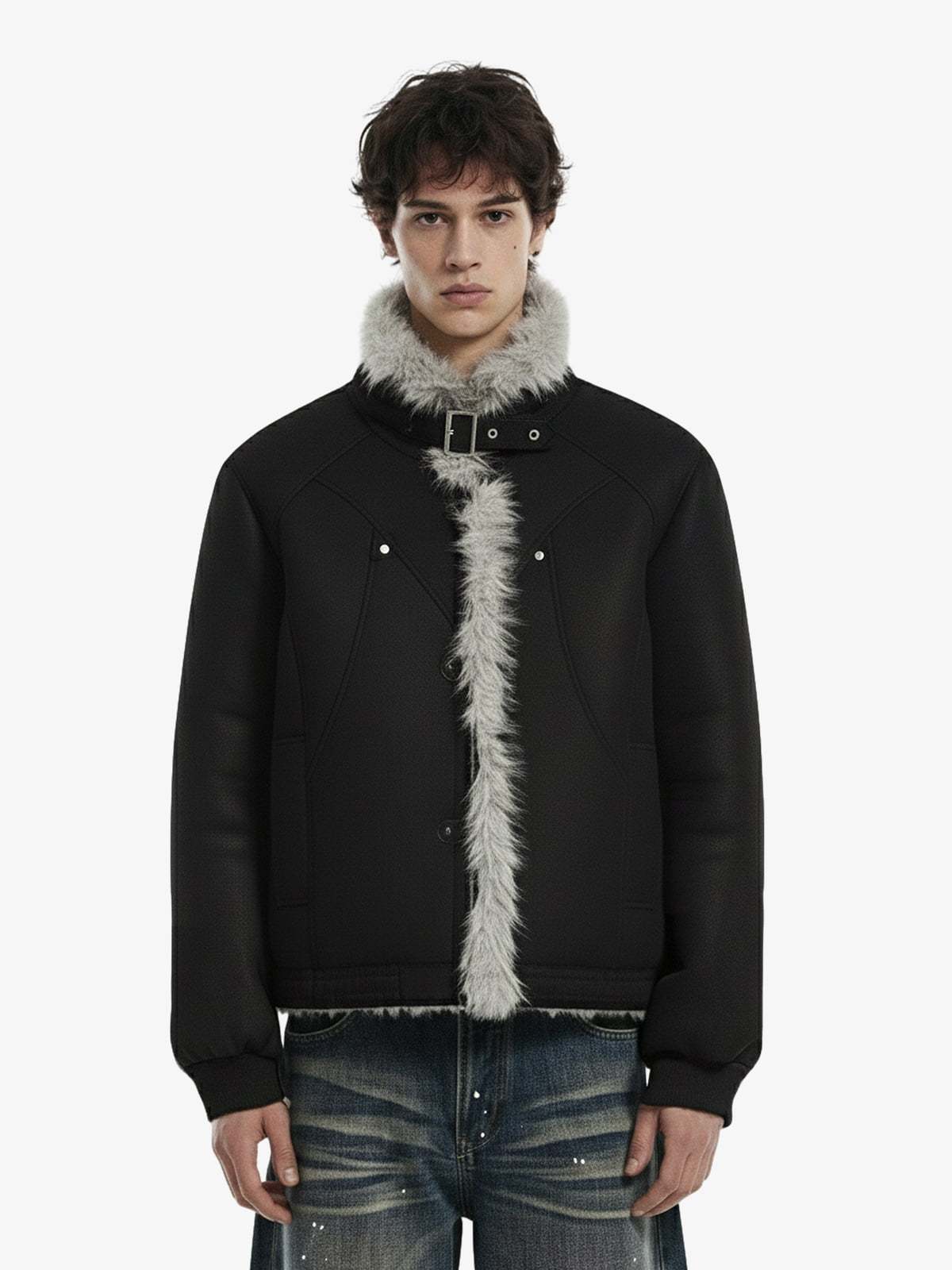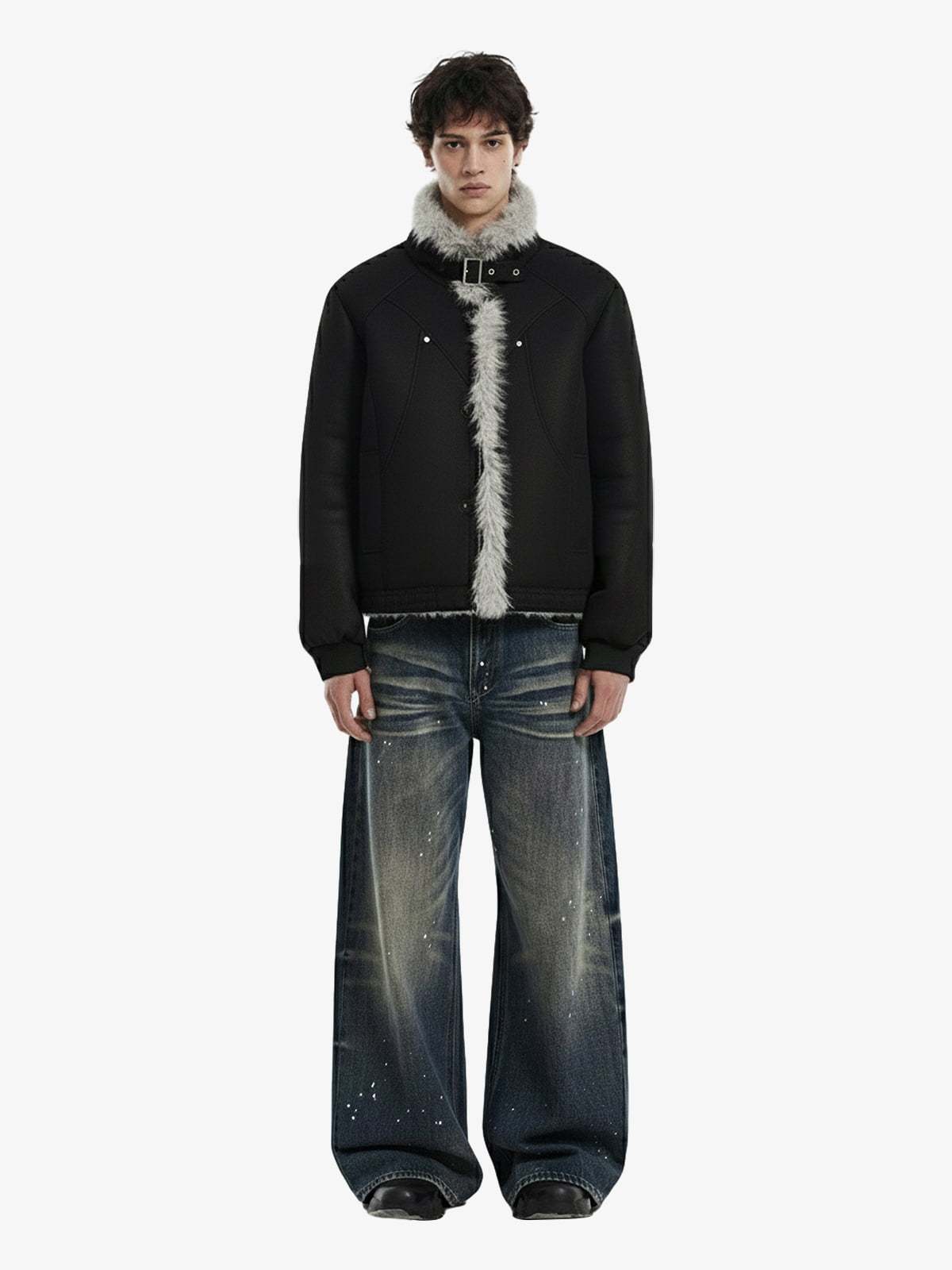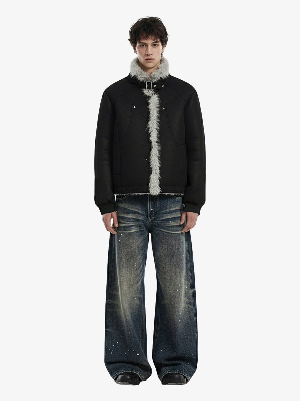 Vintage Faux Fur Trimmed Suede Padded Bomber Jacket