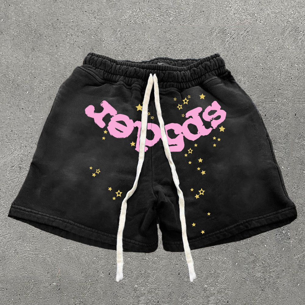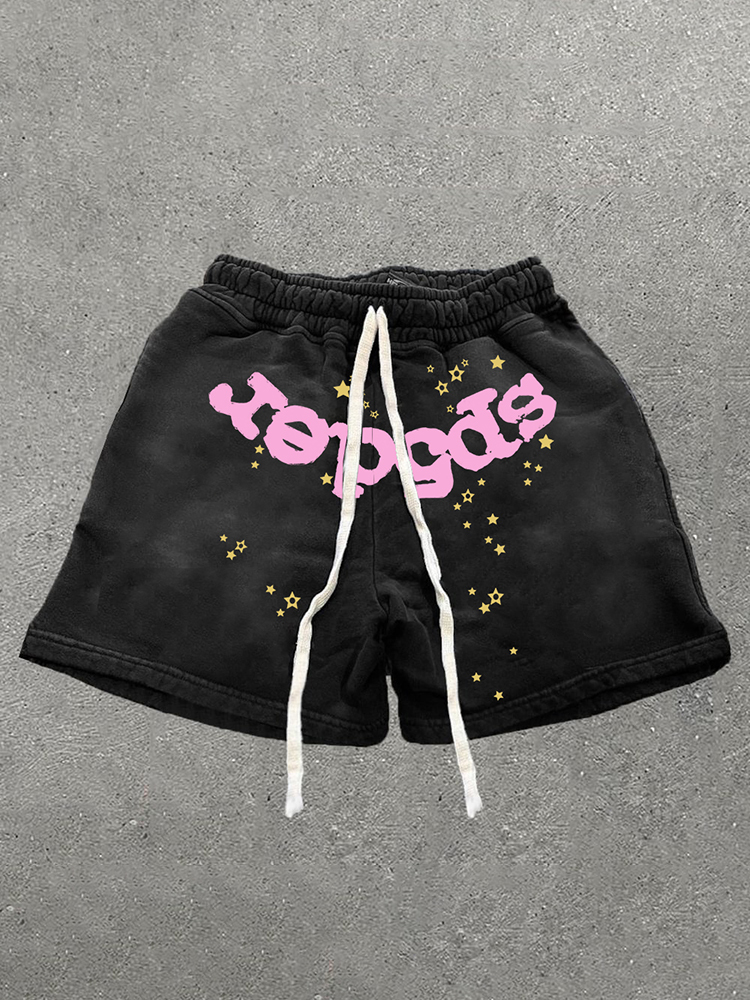 Vintage Spider Pink Graphic Casual Acid Washed Shorts