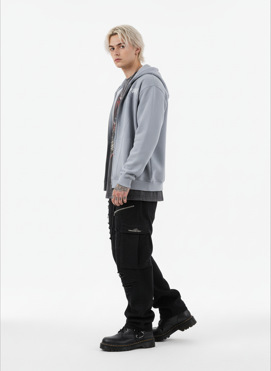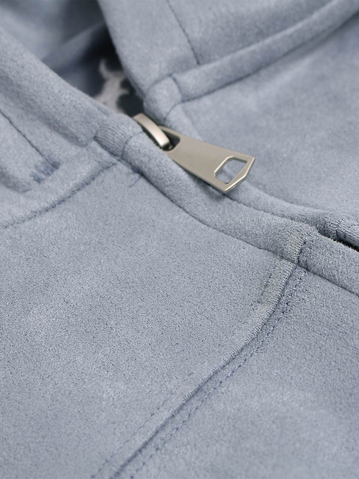 Vintage Suede Letter Embroidered Cropped Zip Up Hoodie
