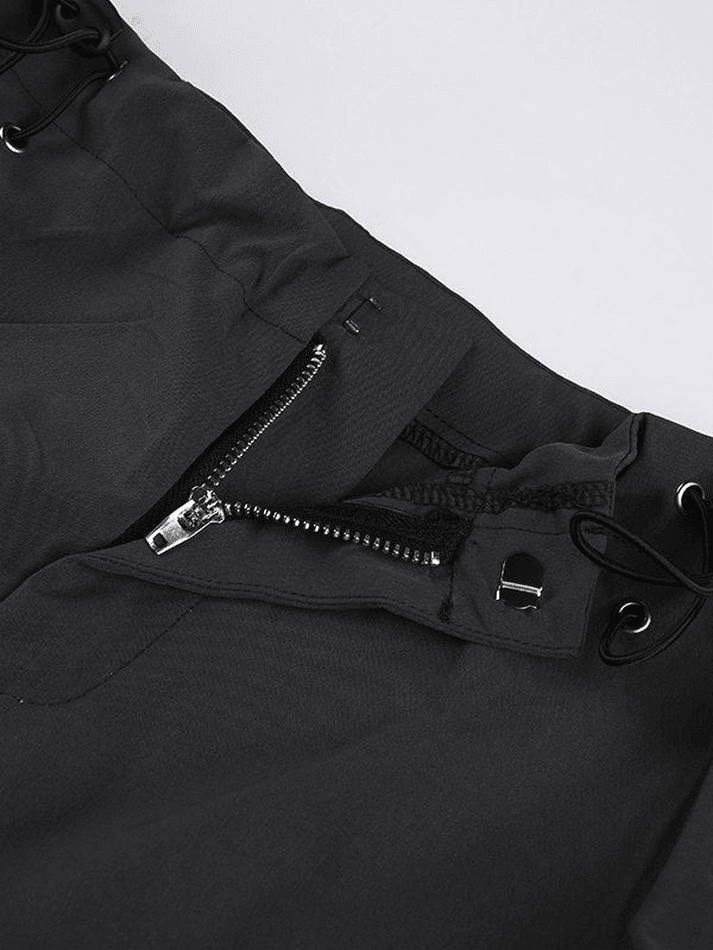 Description: Inspired by vintage y2k aesthetics, these pants are shaped to a straight-leg fit, sit to a flattering low-rise silhouette, and feature drawstring details at the waist and cuffs, complete with zipping & hook fastening at the front.