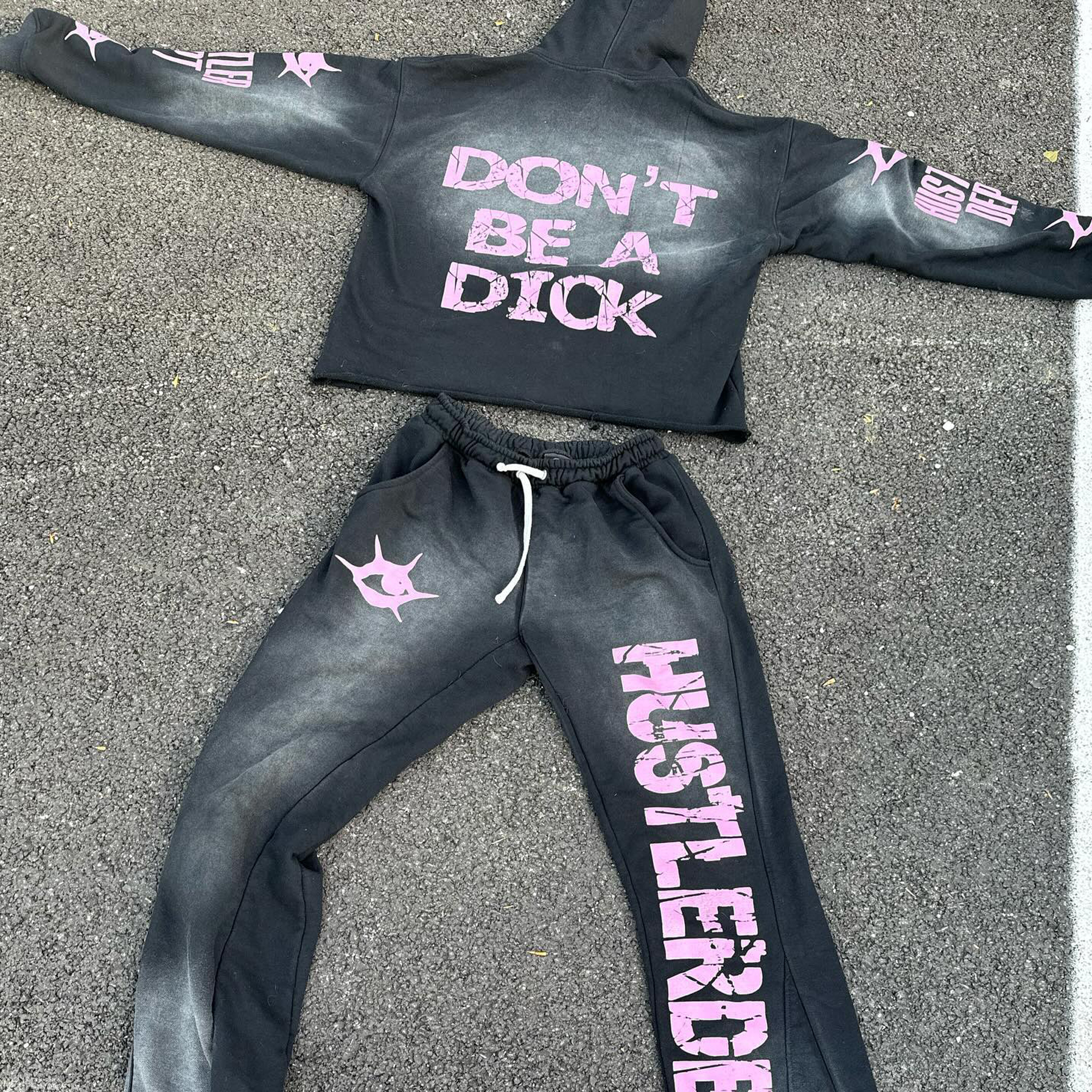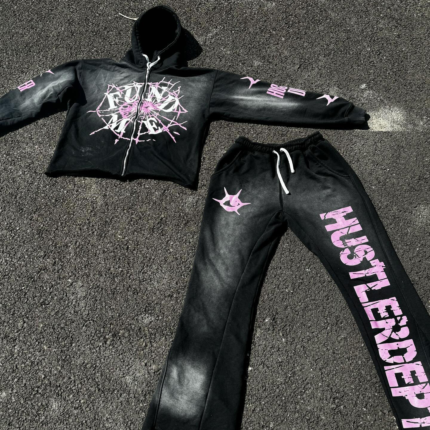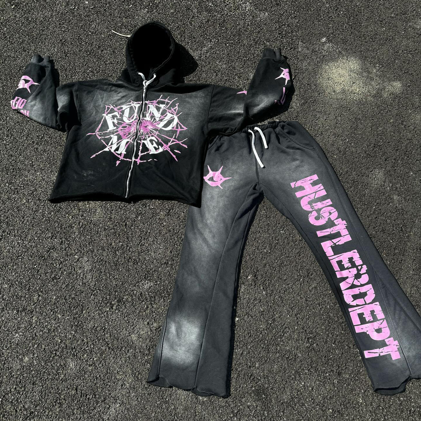 Vintage Zip-Up Hoodie and Trousers Two-Piece Set