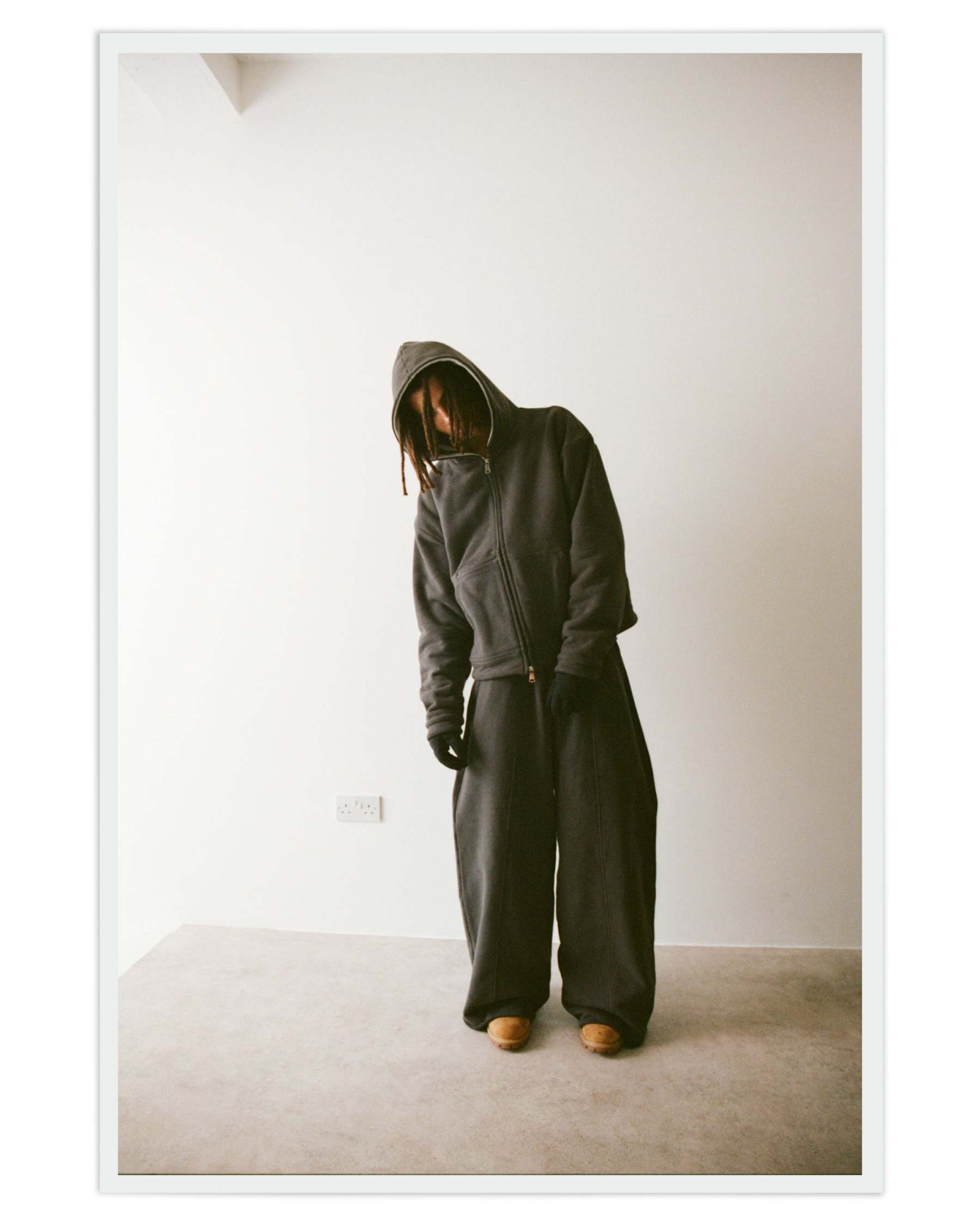 Nichijō Wide Leg Washed Black Cotton Sweatpants