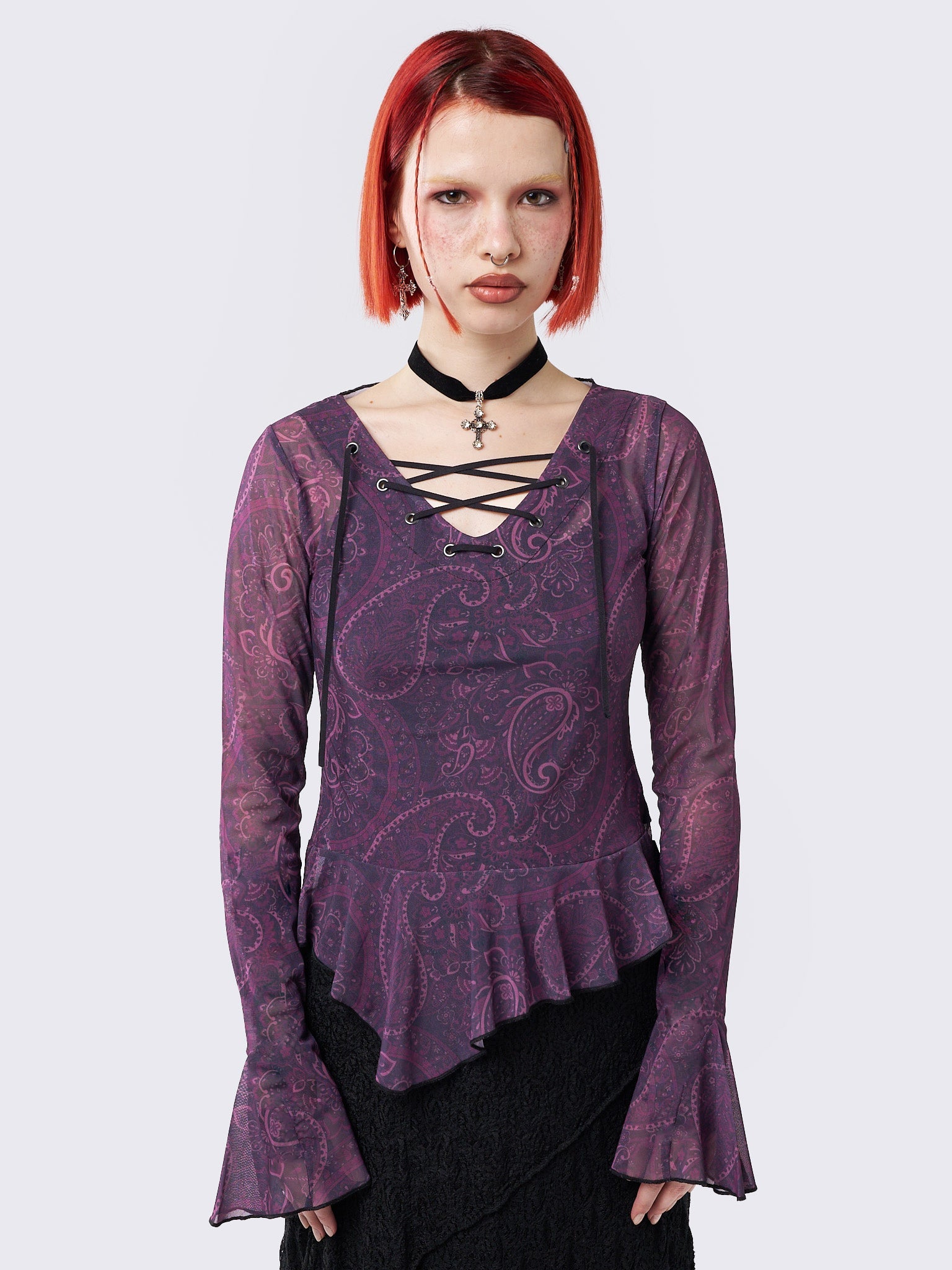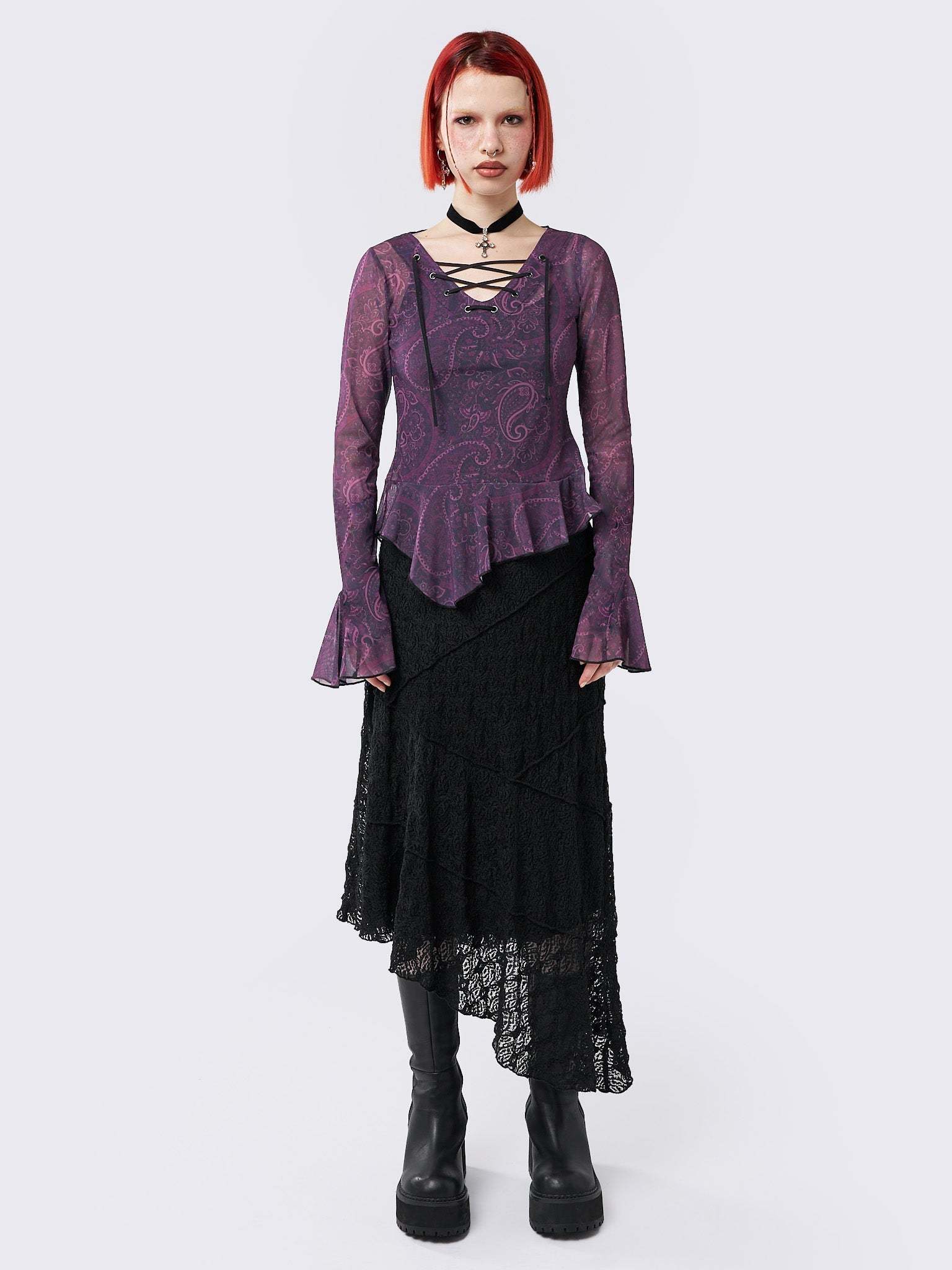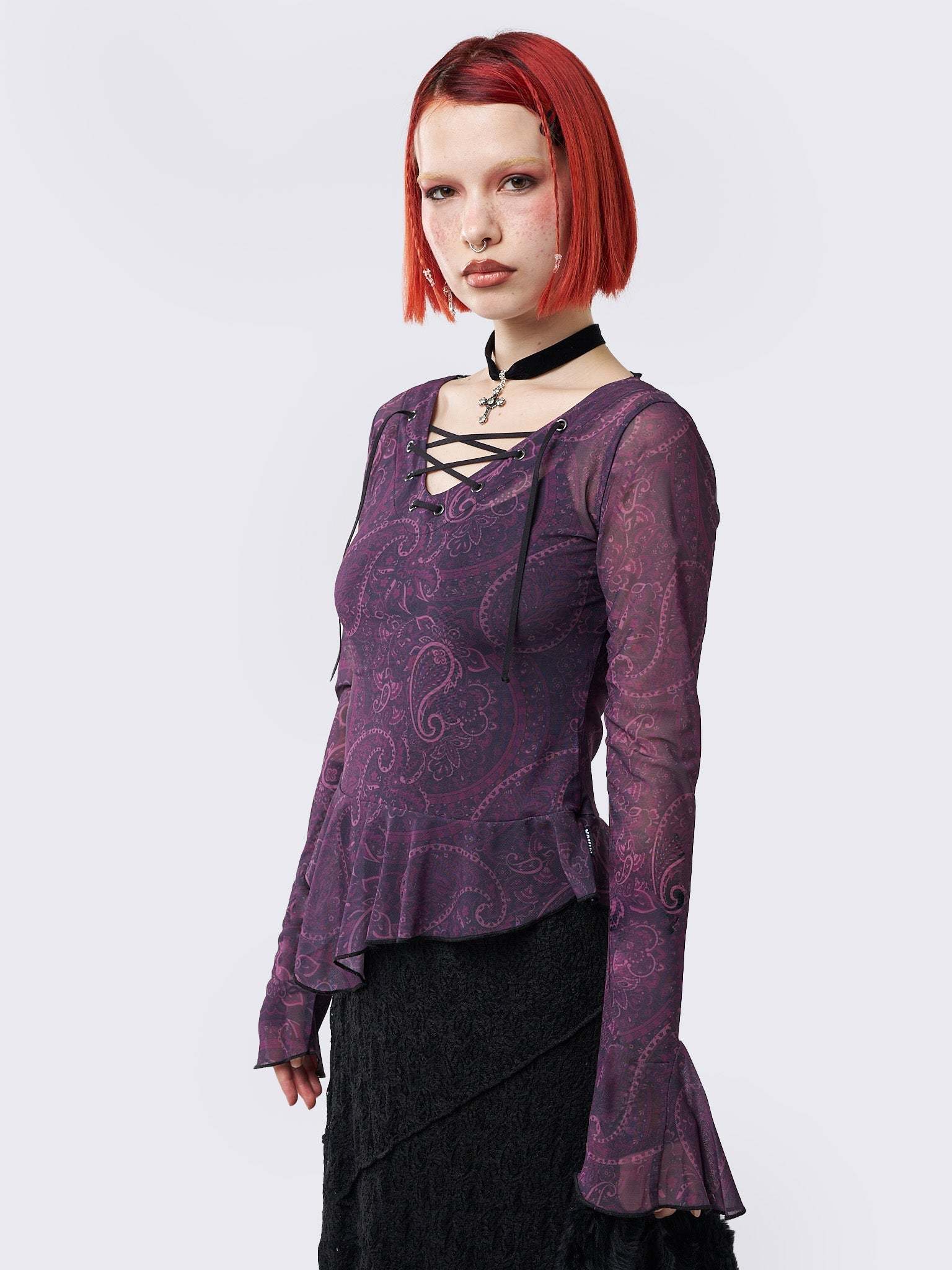Winona Lace Up Flared Sleeve Top